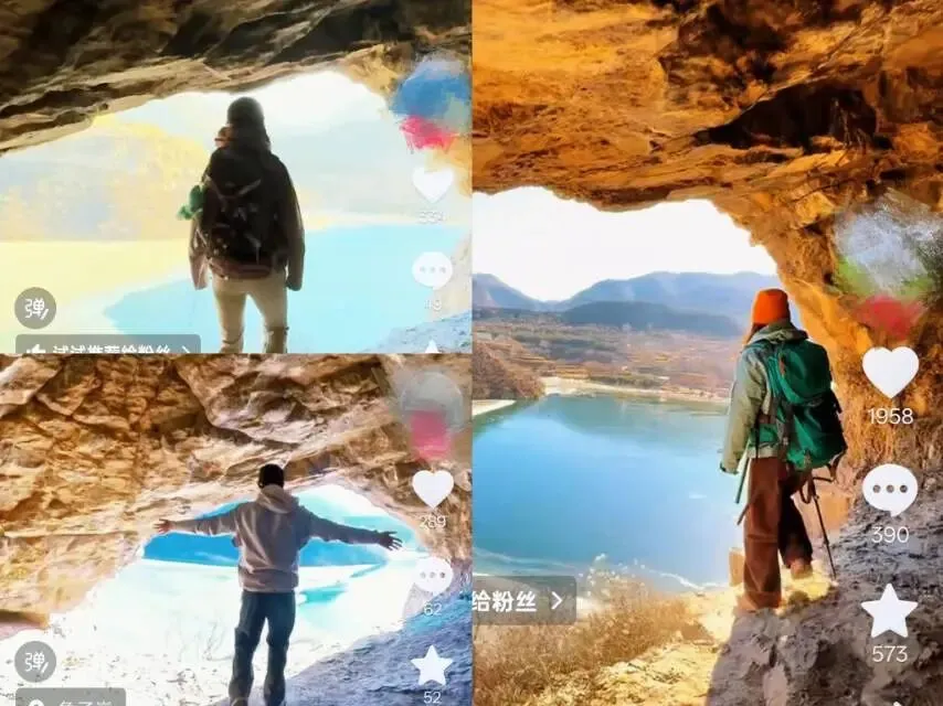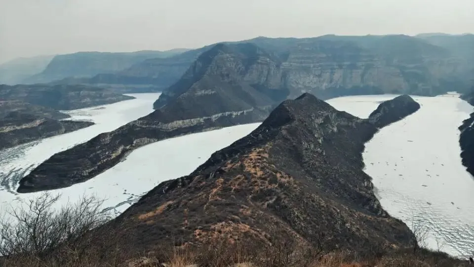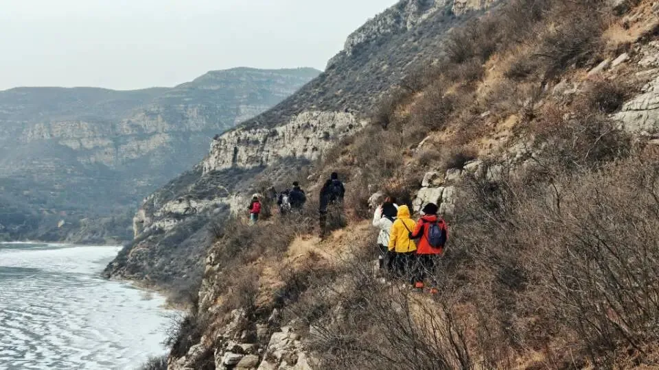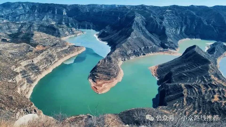 如果您是户外活动的爱好者,那最近一定会被“乌孙古道太原分道”的视频刷屏。这条徒步路线从1月一直火到现在 甚至还有很多外省的驴友专程赶来一睹它的风采。这是太原冬季户外圈最热门的徒步路线 没有之一!它就是位于太原古交的龙城秘境:角子崖双连洞因为这里的热度实在是太高,所以被广大去过的驴友起了各种名字:乌孙古道太原分道、虎跳峡太原分峡、麦理浩径太原分径……山西作为北方城市 相对是比较缺水的,所以大家对于这种有山有水的地方就有一种独特的情怀。汾河是山西的母亲河 太原有汾河二库,所以它自然就会特别受太原市民的关注和喜爱。双连洞是角子崖这边半山腰上的两处天然洞穴,从洞里看汾河 又有不一样的感觉。在这边无论是拍视频还是照片,都非常的惊艳。因为现在的热度极高 所以很有可能一不小心你在这里的视频爆火而成了户外圈的大网红或者照片在朋友圈被赞爆!太原的汾河流域非常奇特,犹如一条巨龙盘踞在龙城西侧。角子崖位于汾河西岸,因为在这里能看到汾河最美的一处转弯,所以被称为龙城秘境。这处汾河上的极致美景 驴友们之前称它为鳄鱼湾,后面又被人叫做双龟出海,惟妙惟肖另一个角度看神龟出海,就是汾河版“海洋之心”,我们找到了好几处打卡点位,可以给大家拍摄别样的山系大片