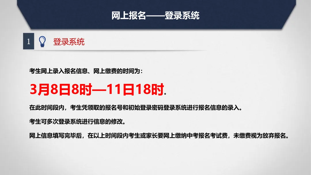 2.报名单位审查核发“中考报名号”、“报名登录密码”。