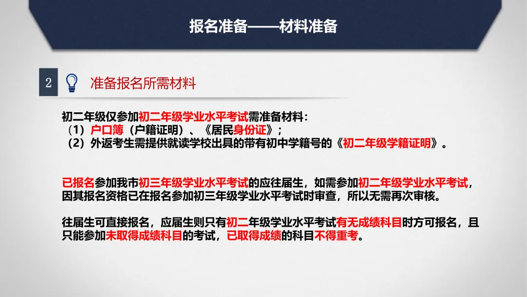 1.初中学校和县(市、区)招生考试机构(以下简称报名单位)审查考生的报名资格(学籍、户口簿、《居民身份证》、《义务教育证书》等)。