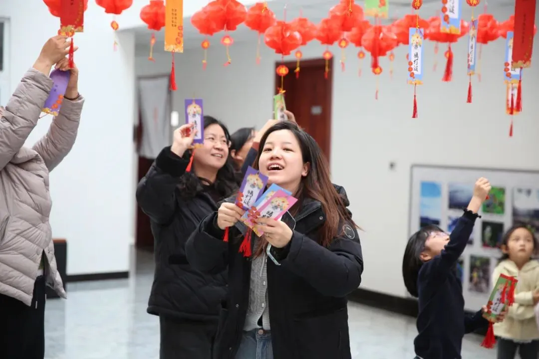 本次活动由中心工会、青工委、妇工委承办,当天下午,中心三楼大厅张灯结彩、暖意融融。火红的灯笼错落悬挂,五彩的灯谜条随风摇曳,将现场装点得格外喜庆,处处洋溢着浓厚的节日气息。活动伊始,中心领导向全体职工致以诚挚的元宵祝福,并宣布活动正式开始。