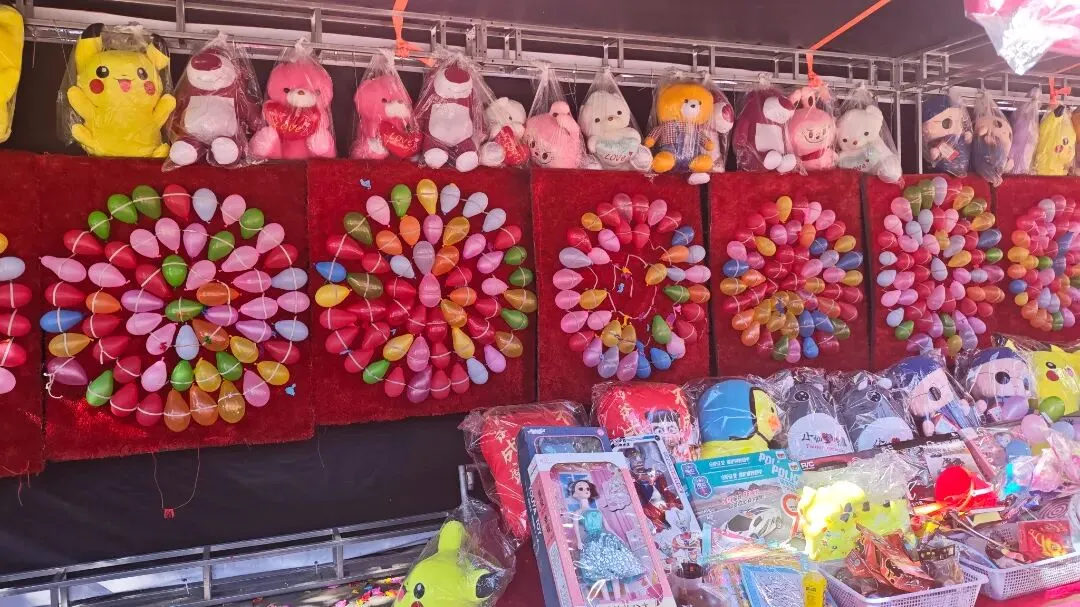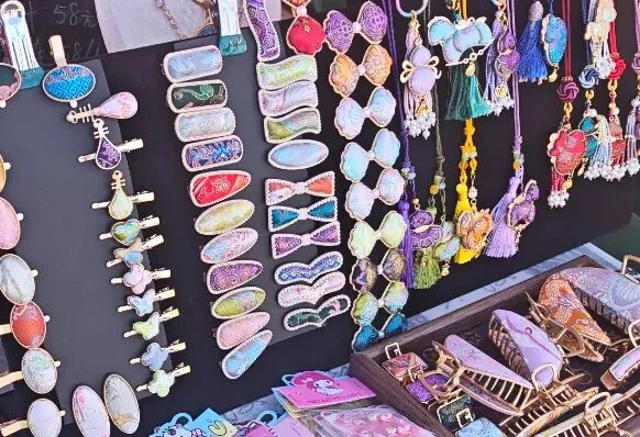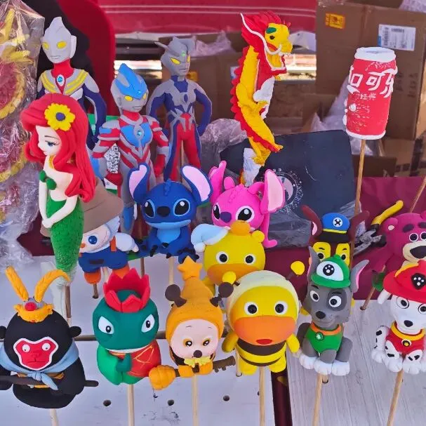 面塑摊位前匠人指尖揉捏出新奇的卡通人物,惹得孩童踮脚张望;
