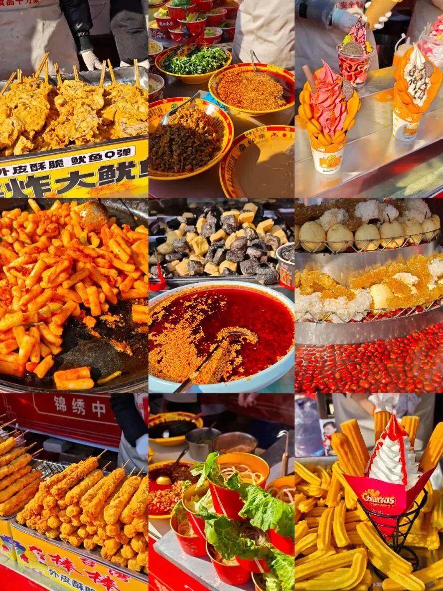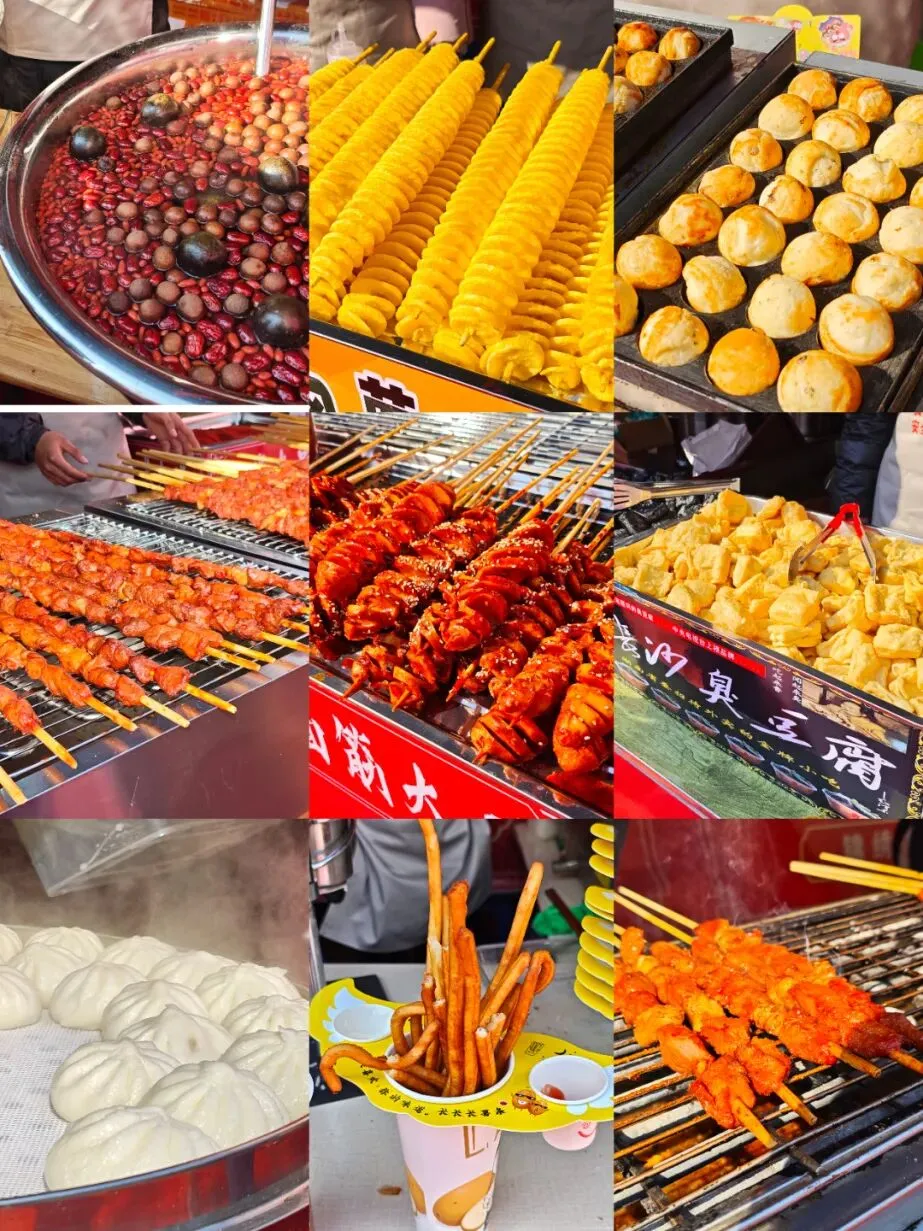 章鱼小丸子在木鱼花下轻轻颤动,超长薯条金黄酥脆,酸辣粉,冰激凌,炸元宵,烤红薯,热干面......