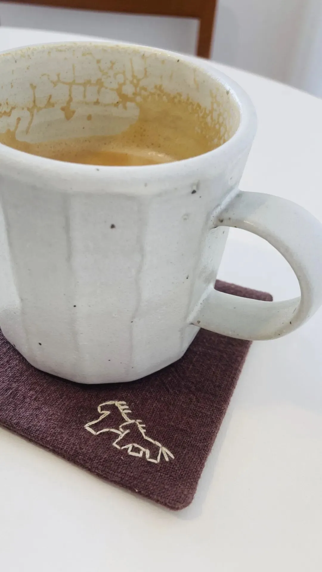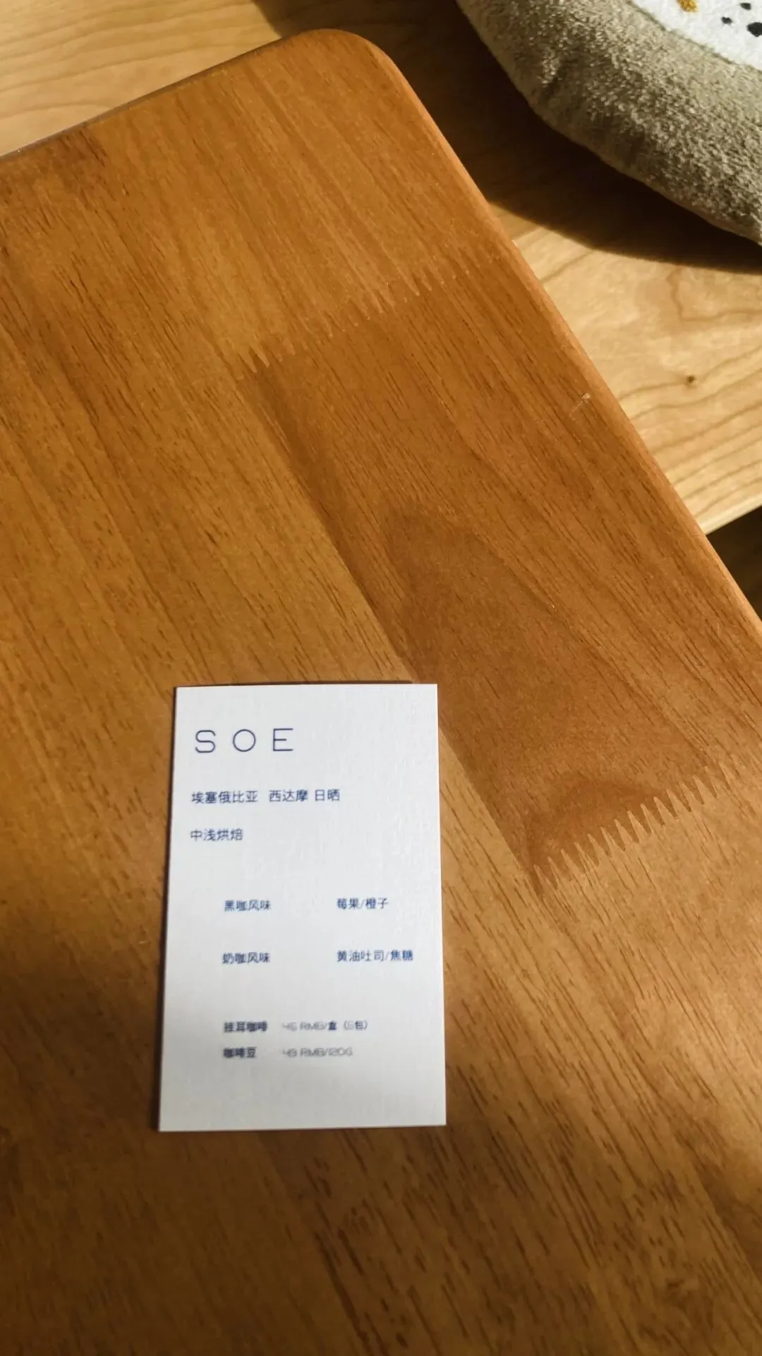 虽然闲聊天的时候一点没有正形,但是Joe做咖啡的时候又非常专业非常正经。每一杯咖啡的出品都非常用心,端上桌的时候不仅会附赠一张咖啡介绍小卡,Joe还会详细介绍这杯咖啡的风味、特点和推荐饮用方式。甚至连布艺杯垫都相当有设计感。