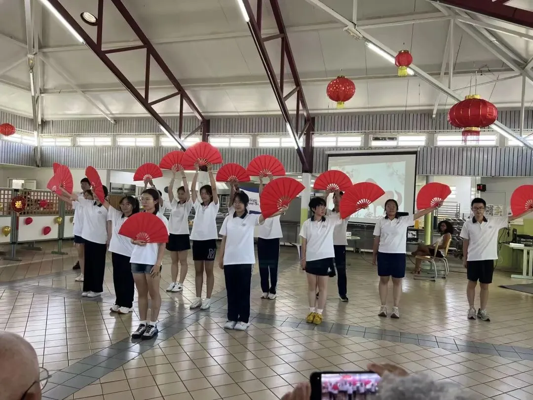 在圣地中学的校园活动中,两校师生共同参与了欢迎仪式、文化工作坊及新春庆祝活动。2月18日,驻圣但尼总领事馆与圣地中学联合举办了“中国新年校园庆典”,分享了中国新年的传统习俗,总领事馆官员也向师生们送上了新春祝福,我校学生带来了极具文化特色的扇子舞和中英法版歌曲《友谊地久天长》,现场氛围热烈而温馨。此次庆典吸引了包括圣地中学师生及寄宿家庭家长、昂布瓦兹中学的中文班师生等130余人,成为中法文化交融的生动缩影。