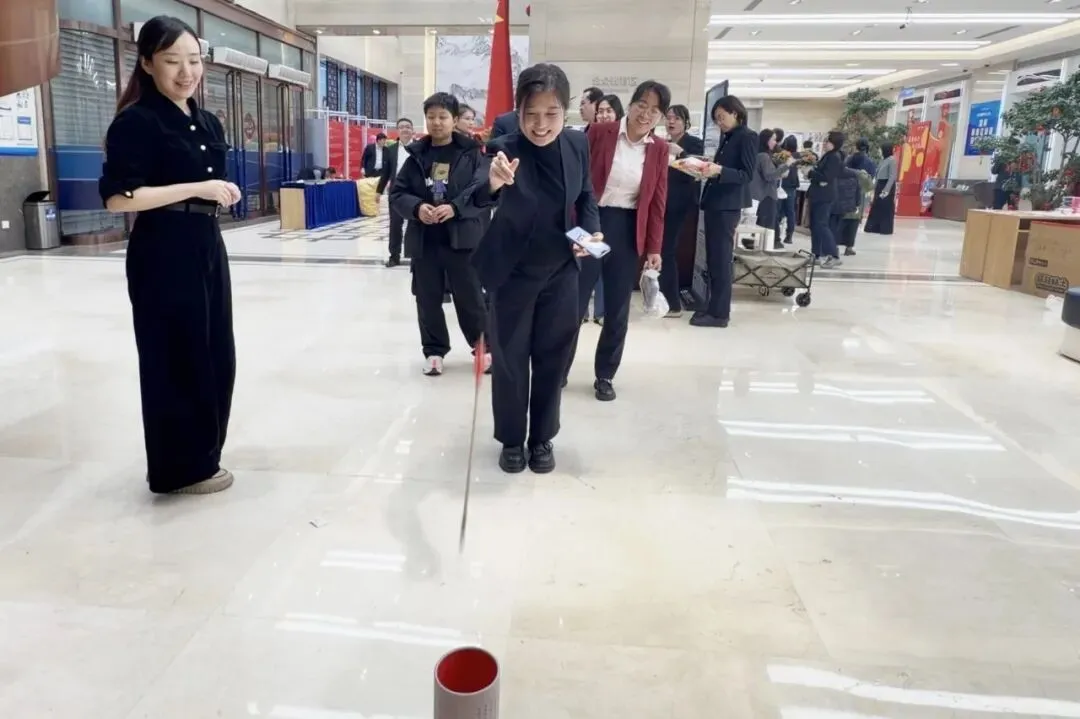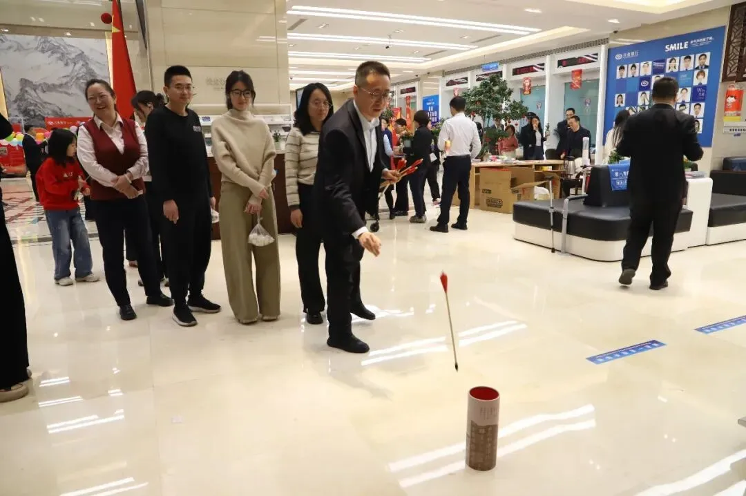 在分行本部,活动现场设置了“猜灯谜”“套圈”“抓马”“投壶”“开心滚滚乐”等多项互动游戏,大家在轻松愉悦的氛围中踊跃参与、各展身手,欢声笑、喝彩声此起彼伏,充分展现出分行员工积极向上、团结协作的精神风貌。