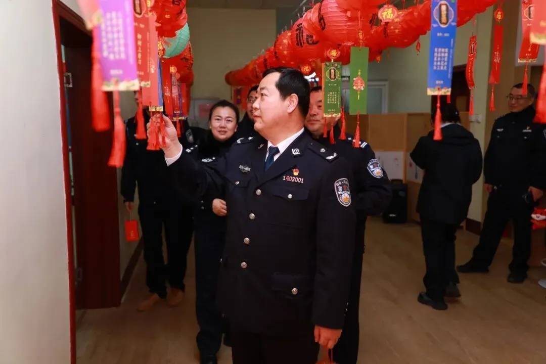活动现场五彩花灯错落有致,灯谜长廊蜿蜒伸展,处处洋溢着喜庆祥和的气息。监狱领导与民警们一同参与活动、共庆佳节,处处洋溢着警营的温馨与活力。