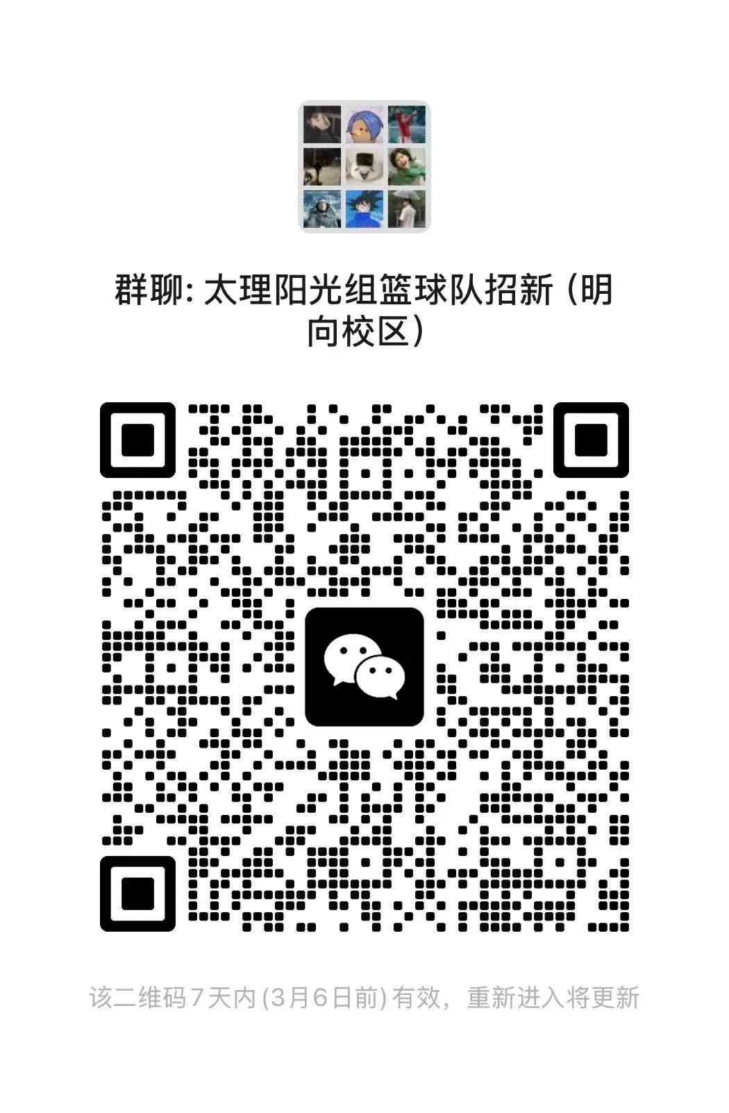 符合招募条件的学生请下载并填写《太原理工大学阳光组篮球队报名表》(附件 ),按要求提交至指定邮箱,同时加入阳光组篮球队报名咨询群(群二维码见附件),以便及时获取报名、选拔相关信息。