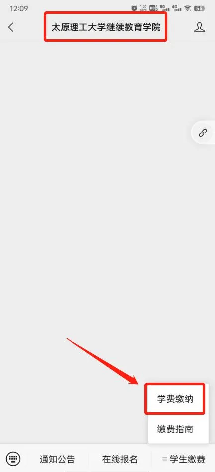 第二步:进入公众号,点击“学生缴费-学费缴纳”,进入缴费系统
