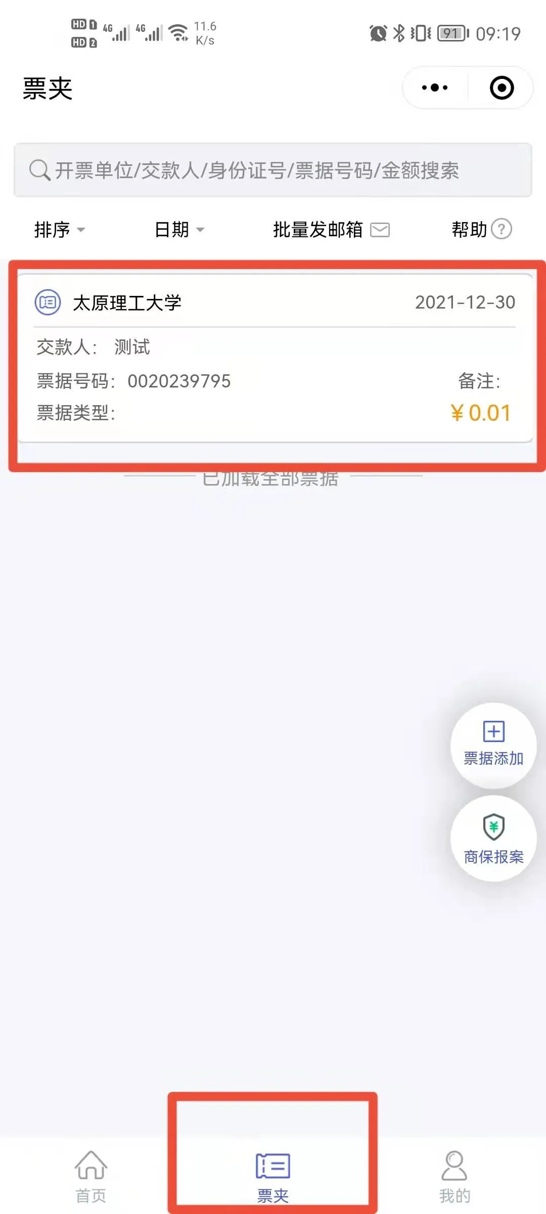 2) 登陆后,选择“票夹”,选中需要查看的票据,进入后点击“查看电子票”,