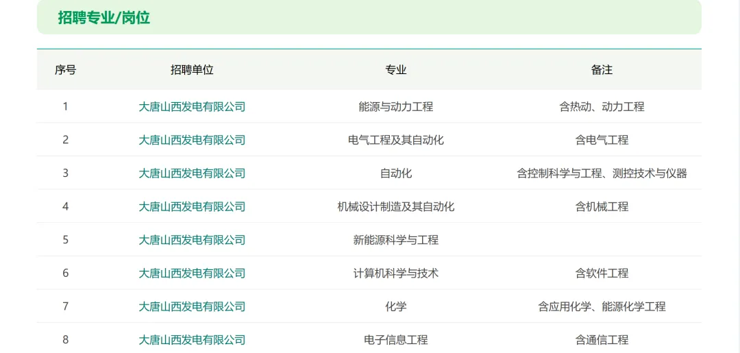 能源动力类、电气类、自动化类、机械类等专业,具体详见以下招聘岗位表。