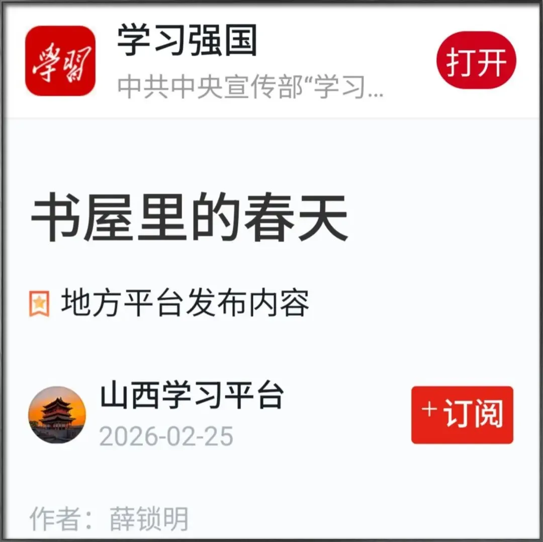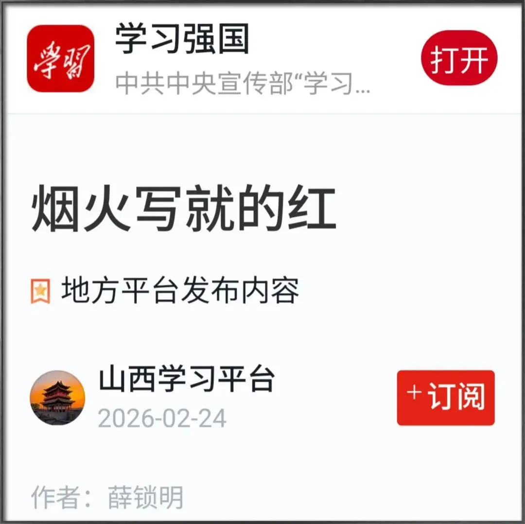 春节前后,《山西日报》《人民网》《人民摄影报》《学习强国》平台,四家主流媒体,先后转载了我公众号里的4篇文章!其中,《学习强国》平台连续转载了3篇。在此,本人向上述媒体致以崇高的敬意和衷心的感谢!
