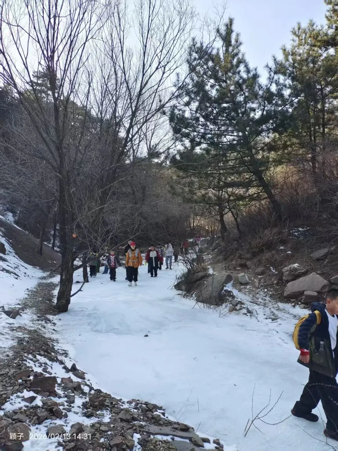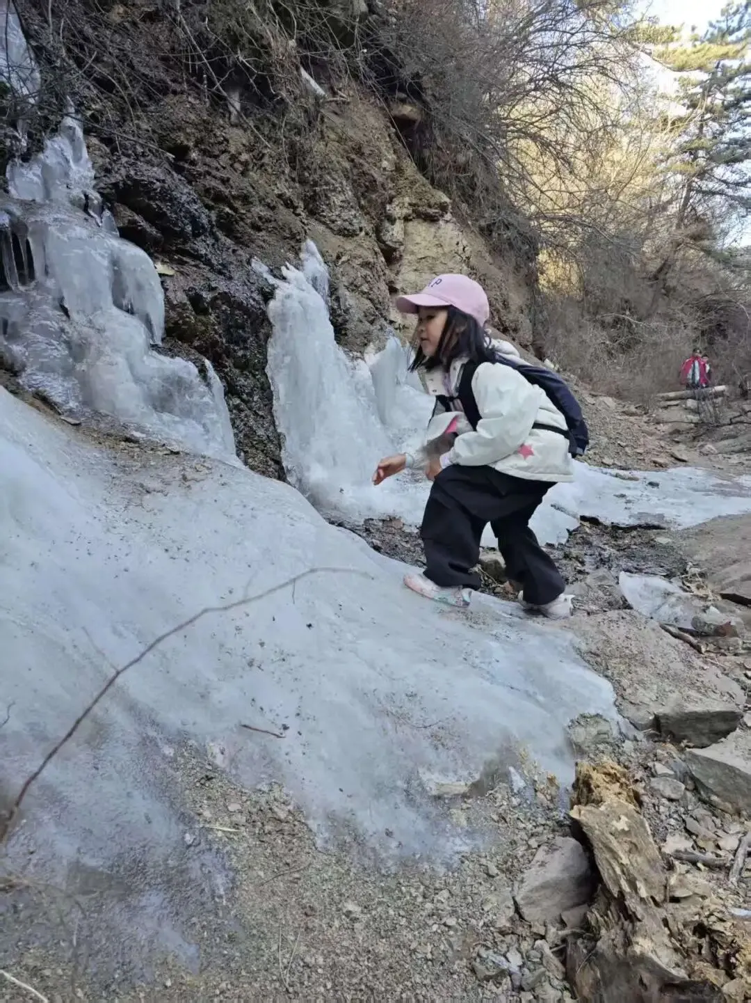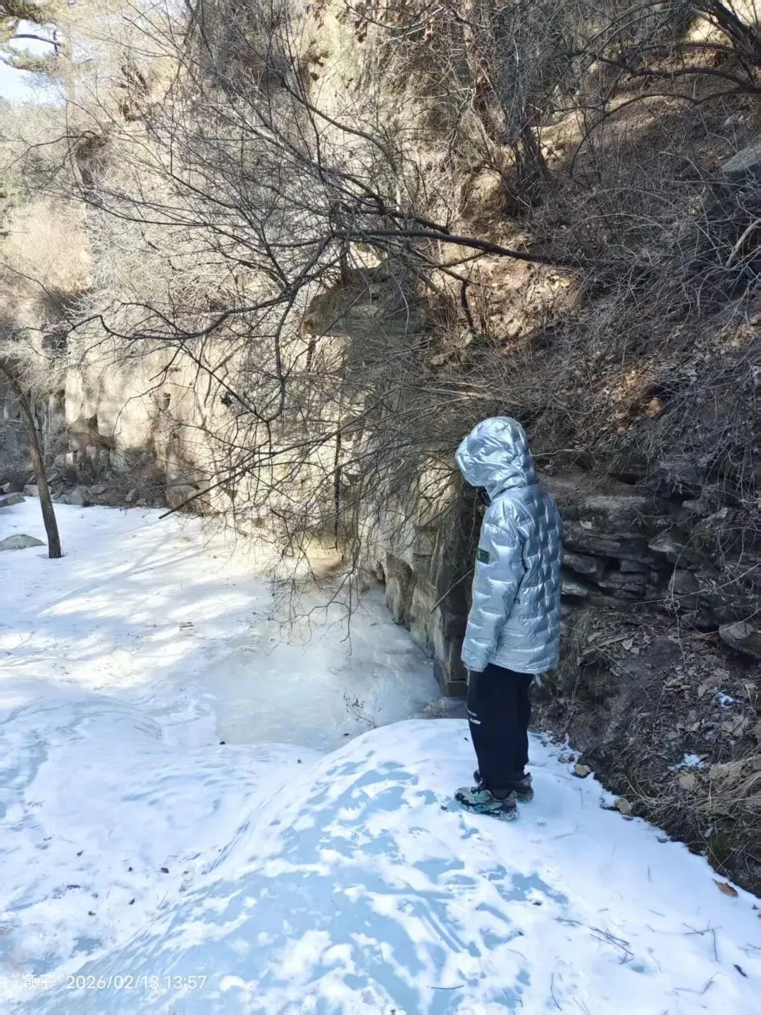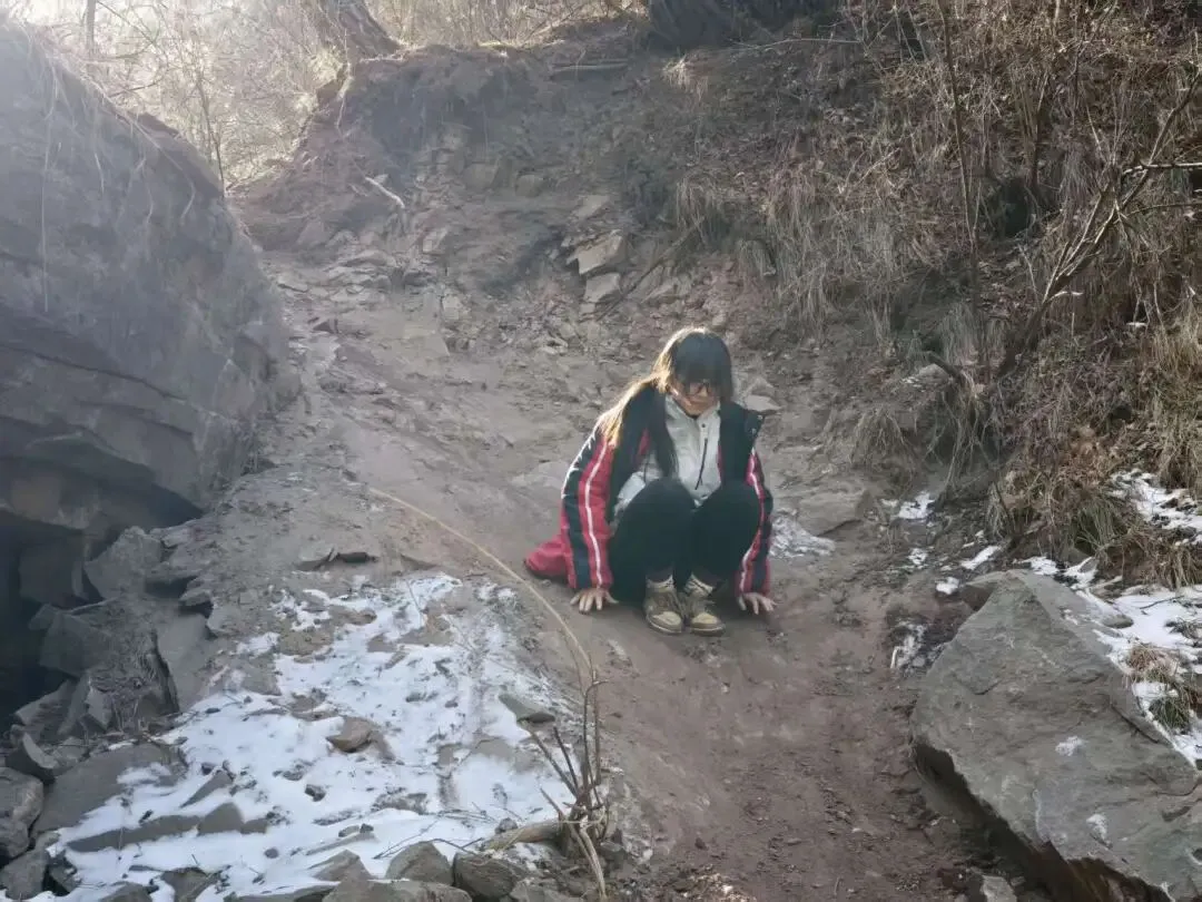 结冰溪边小径(中段核心):碎石+薄冰+冻土混合,部分需踩石而过,防滑鞋必备;偶有小冰坡,需小心!