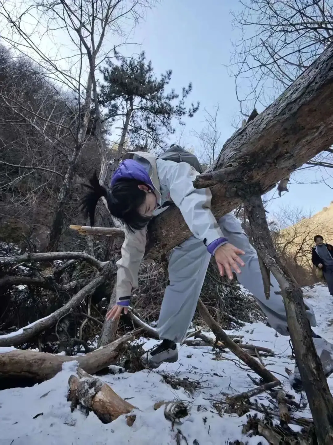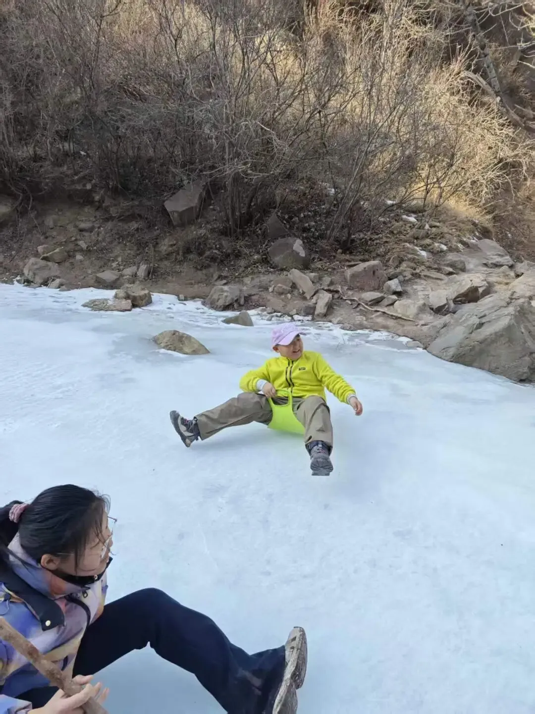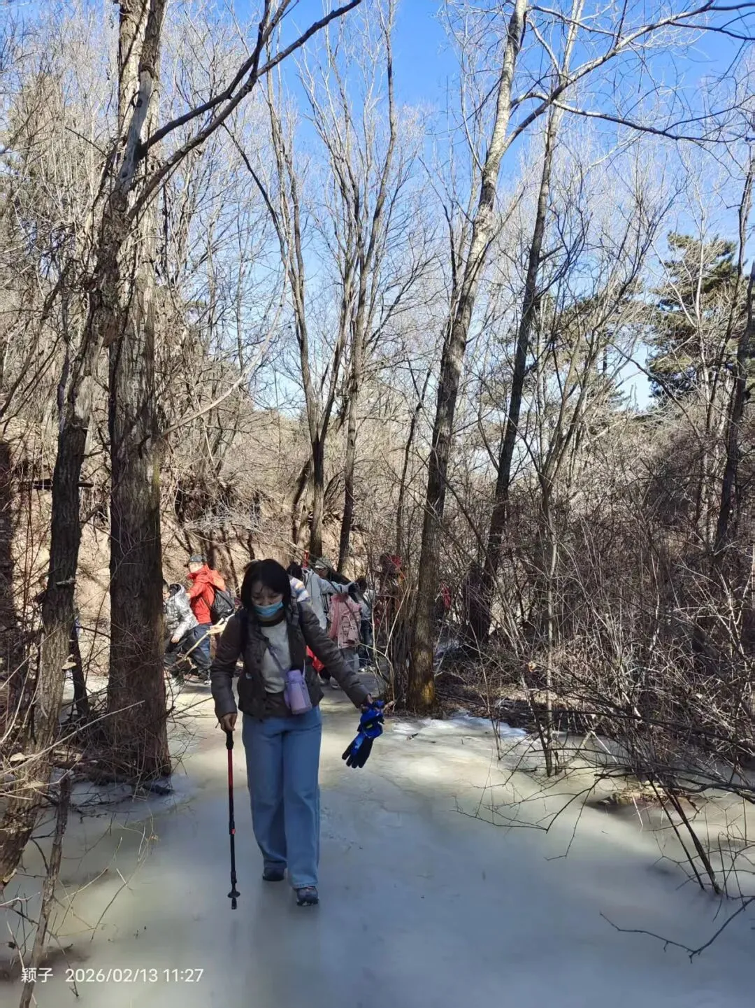 结冰溪边小径(中段核心):碎石+薄冰+冻土混合,部分需踩石而过,防滑鞋必备;偶有小冰坡,需小心!