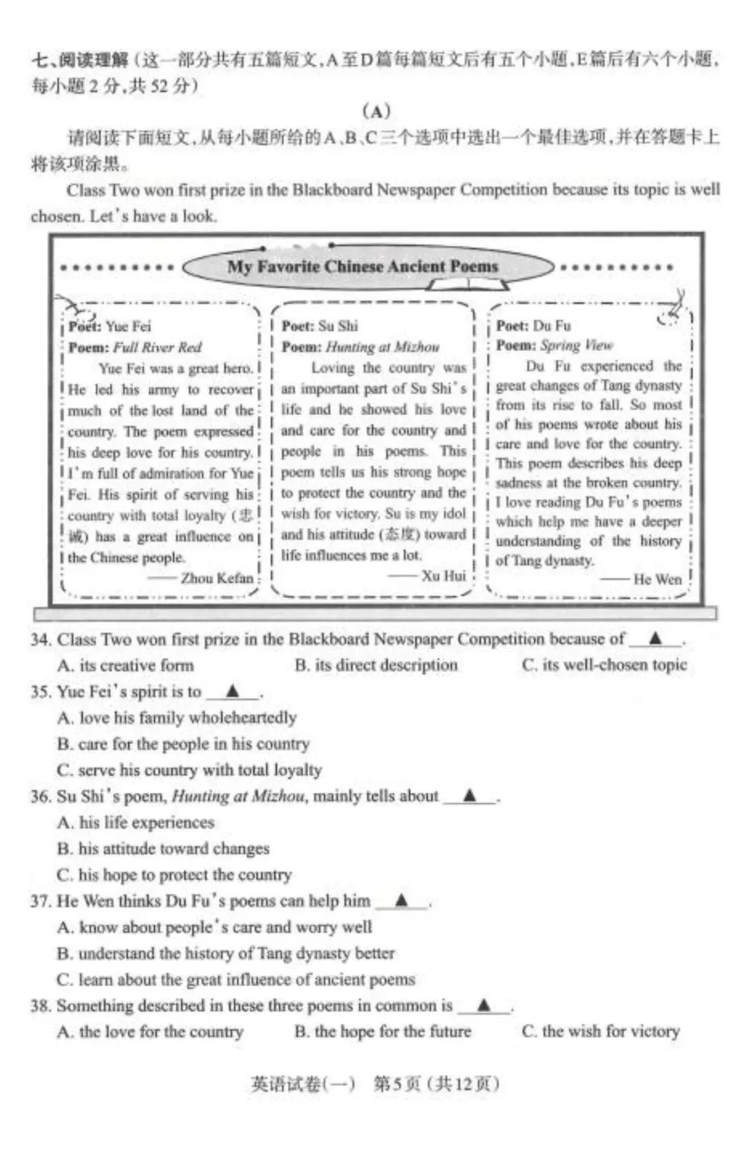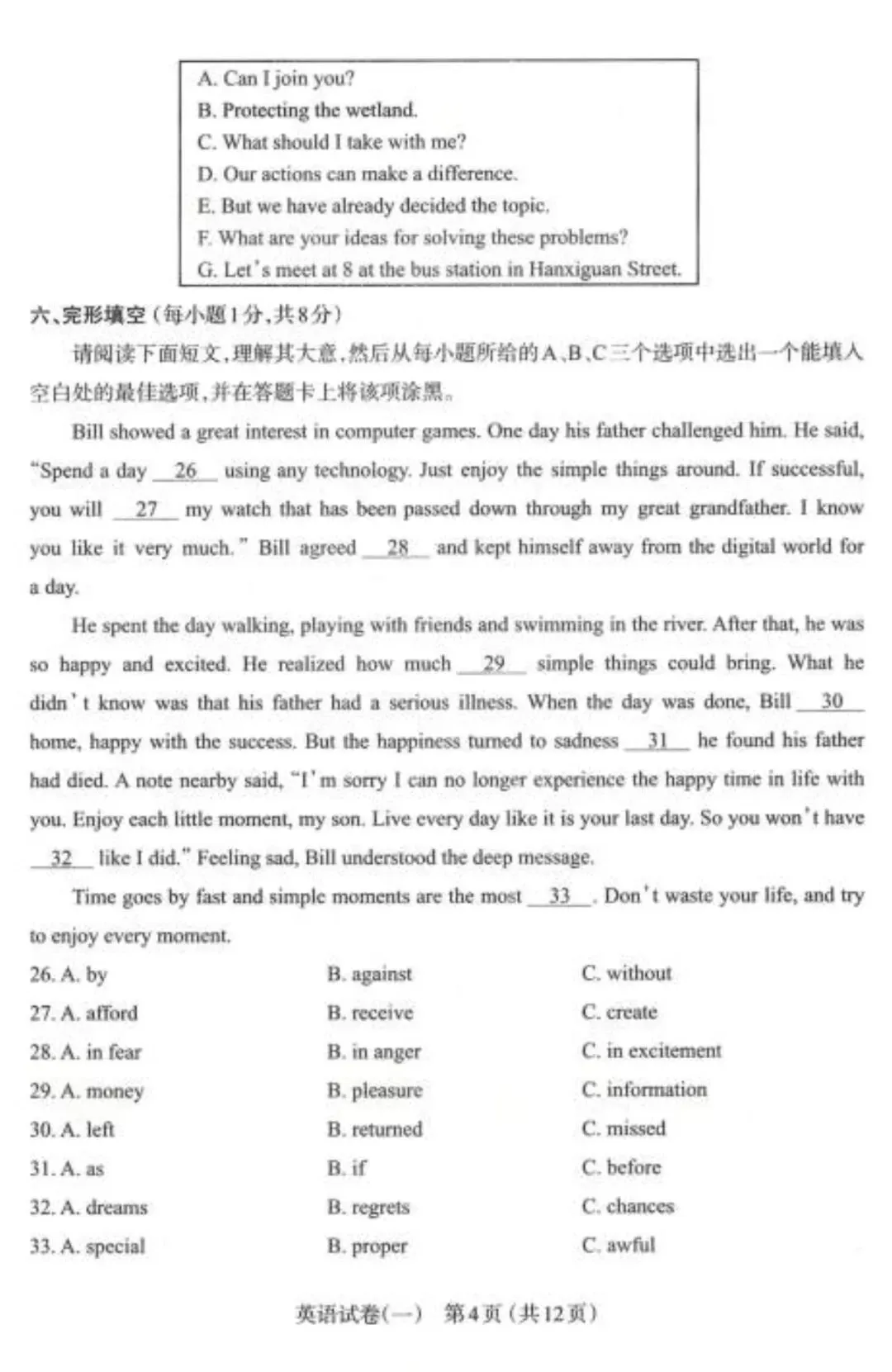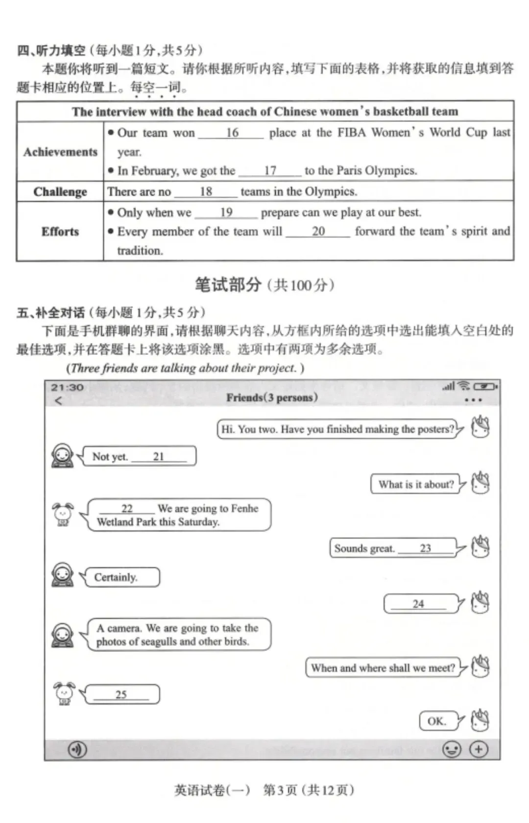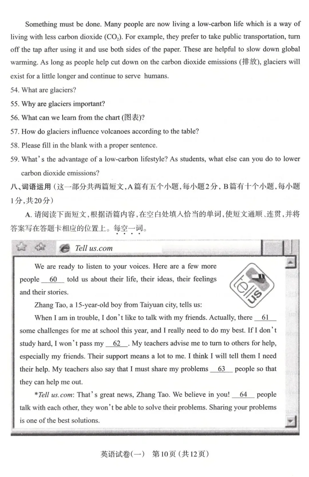 【市一模】太原市2022年初中学业水平模拟考试(一)英语试卷+听力+答案