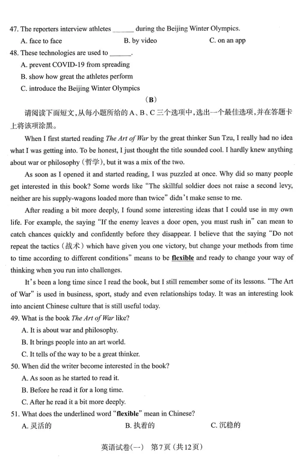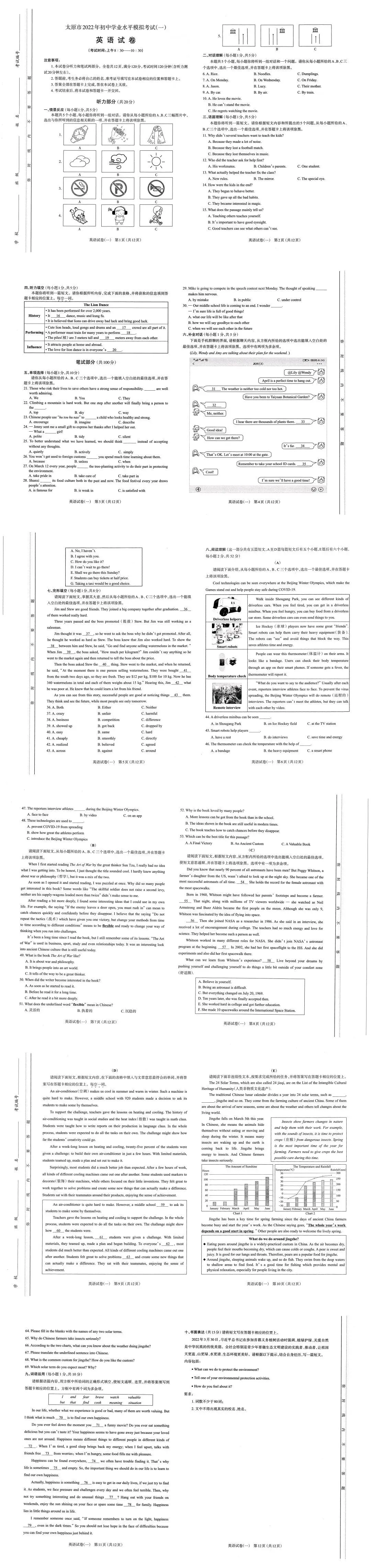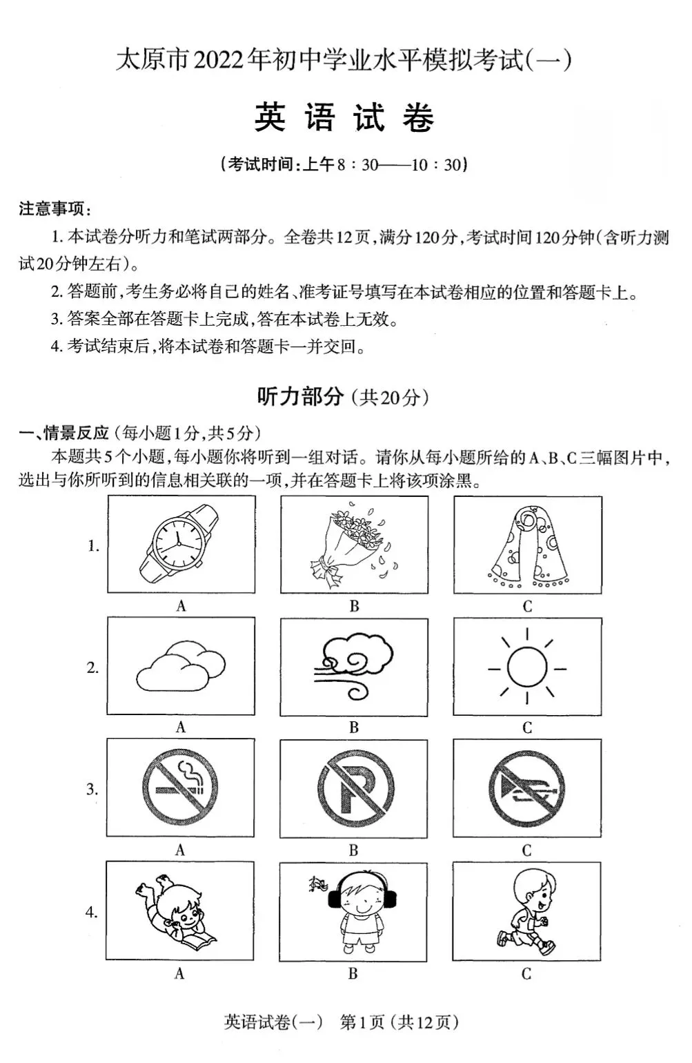 >【市一模】太原市2022年初中学业水平模拟考试(一)英语试卷+听力+答案