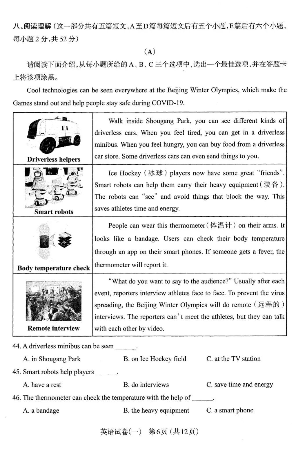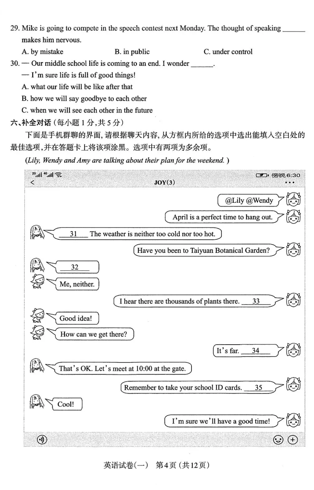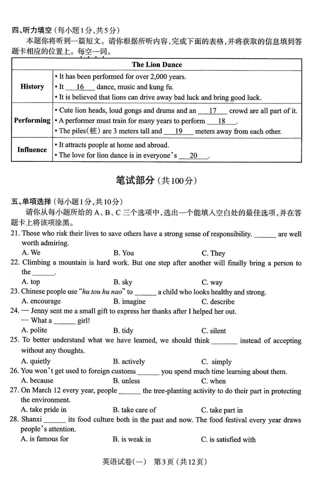 >【市一模】太原市2022年初中学业水平模拟考试(一)英语试卷+听力+答案