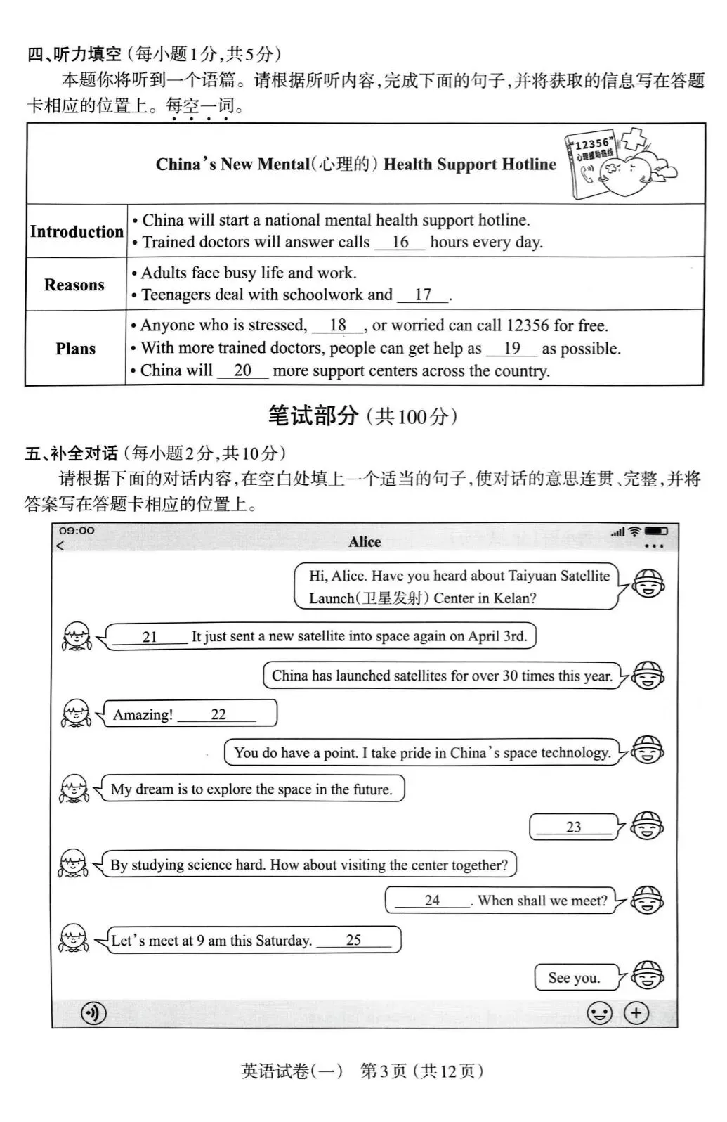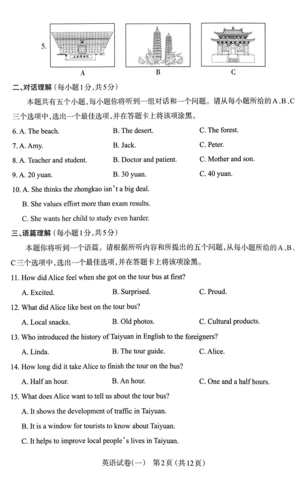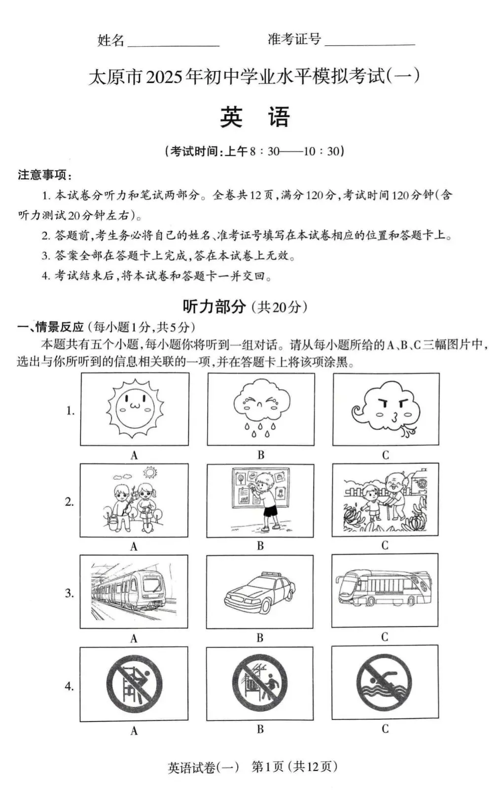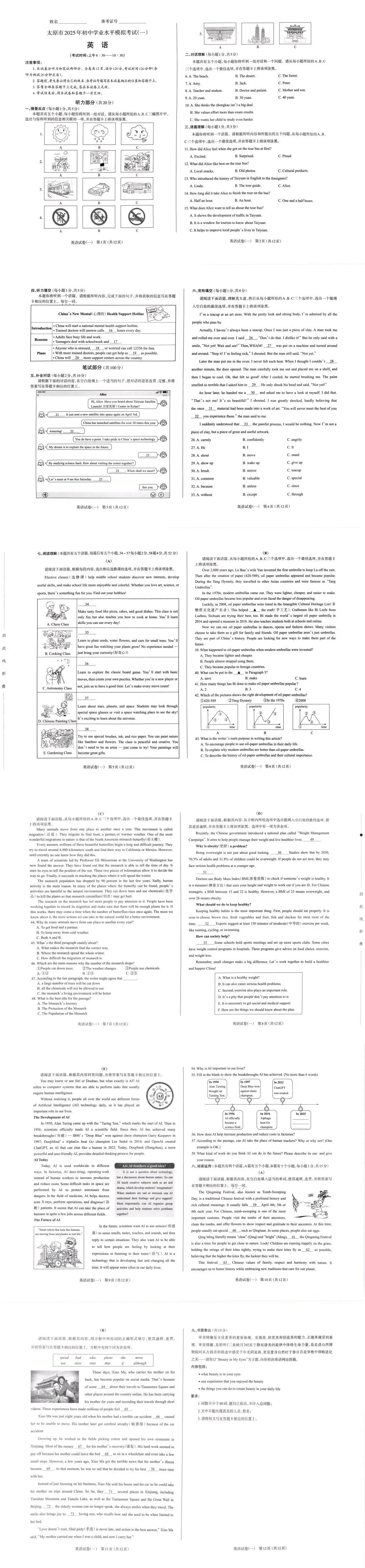 >【市一模】太原市2025年初中学业水平模拟考试(一)英语试卷+听力+答案