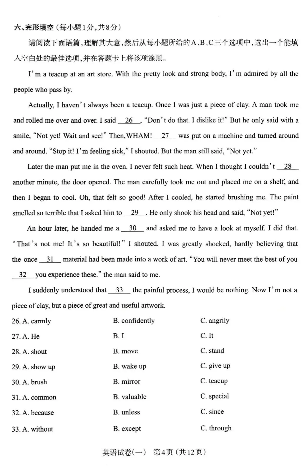 【市一模】太原市2024年初中学业水平模拟考试(一)英语试卷+听力+答案