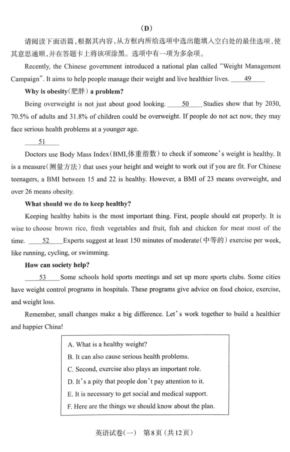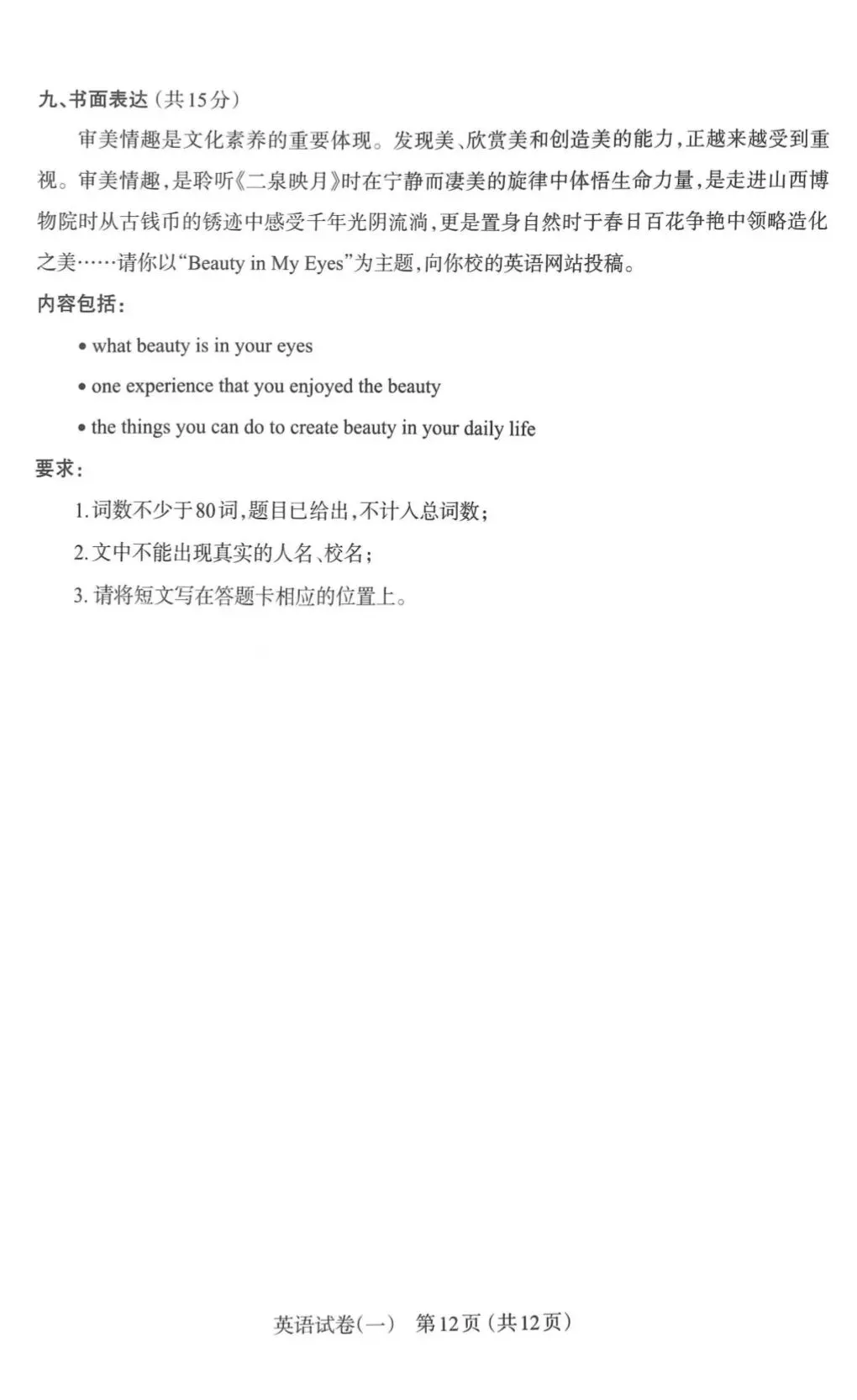 【市一模】太原市2022年初中学业水平模拟考试(一)英语试卷+听力+答案