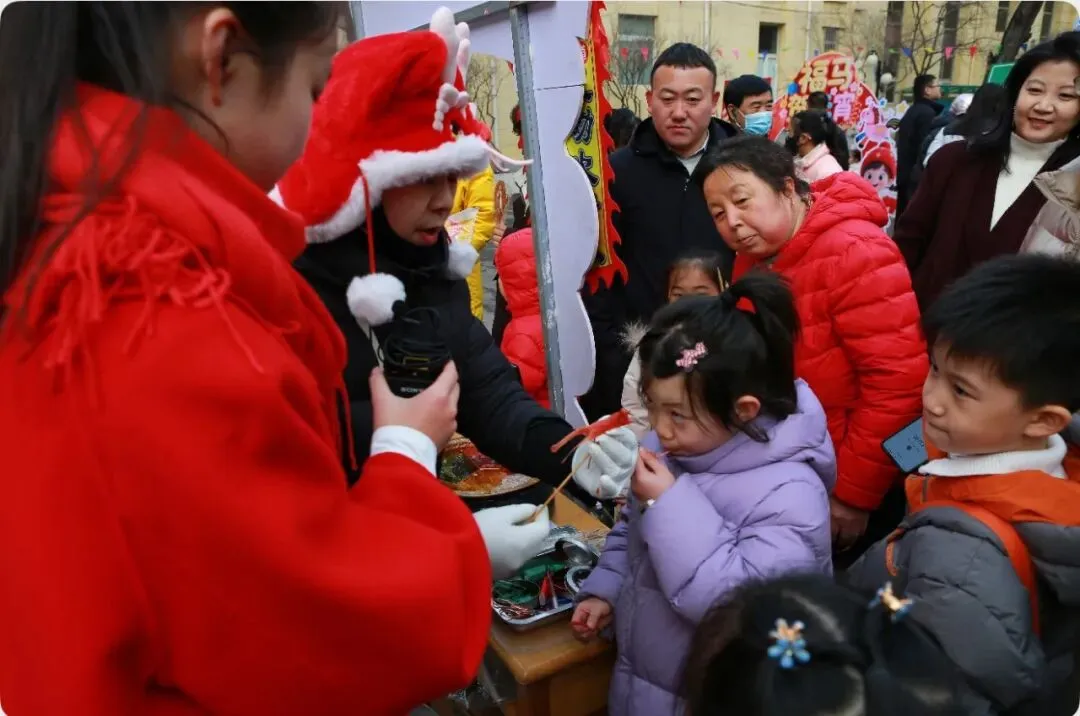 匠心传承品非遗的庙会区更是人头攒动、热闹非凡!从太原市青少年宫门口右手步道至A区、B区门口步道,民俗手工制作区和传统小吃街琳琅满目,孩子们在非遗传承人手把手指导下,体验晋阳钩编的指尖温暖,惊叹糖画以勺为笔、以糖为墨的神奇,欣赏糖人吹塑的立体生动,感受晋阳剪纸粗犷中的细腻,揉捏晋阳彩泥塑造可爱形象,探索板笔书画字中有画的独特魅力,品味果酱画带来的舌尖美学,每一项非遗技艺都在孩子们心中种下传统文化的种子。