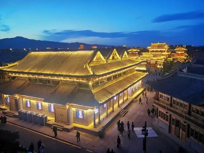 太原古县城夜景太原古县城:因电影《满江红》取景而名声大噪,传承着2500多年晋阳古城的文脉。 古城布局犹如一只头北尾南的凤凰,故有“凤凰城”美誉。 夜晚灯光亮起时,城楼与街巷流光溢彩,是拍摄古风大片的绝佳地点。