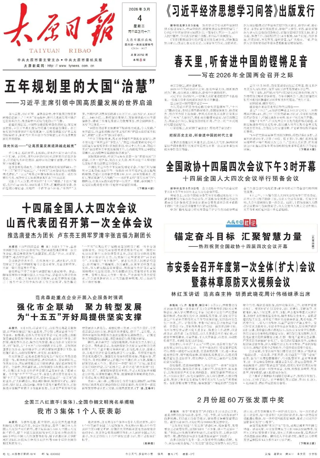 ▶《太原日报》2026年3月3日版面速览