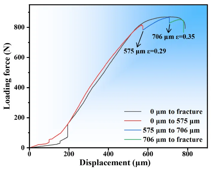 图2. 原位拉伸试验过程中的载荷-位移曲线。