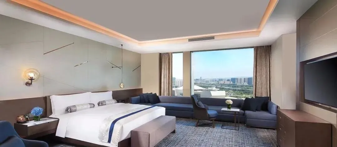 客房以晋韵千载,大气方来展开,为酒店客房营造人文与环境的一体空间体验。设计现代格调高雅,深蕴本地风格,打造尊享品质,让顾客同赏城市的繁盛与自然的安逸祥和。