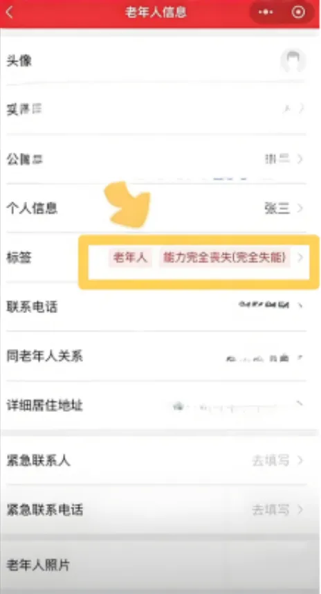 第三方评估机构根据相关标准进行客观评估后做出评估结论并上传至“民政通”体现在老年人信息中的“标签”里。