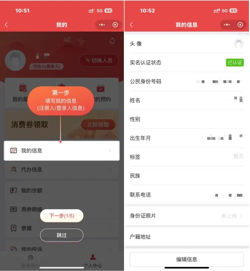 登录成功后,完善“我的信息”(消费券不可跨市使用,在填写居住地址时需保证居住地与消费券实际使用地保持一致)。