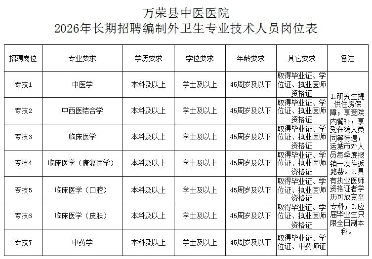 💡 运城市万荣县中医医院长期招聘编制外卫生专业技术人员