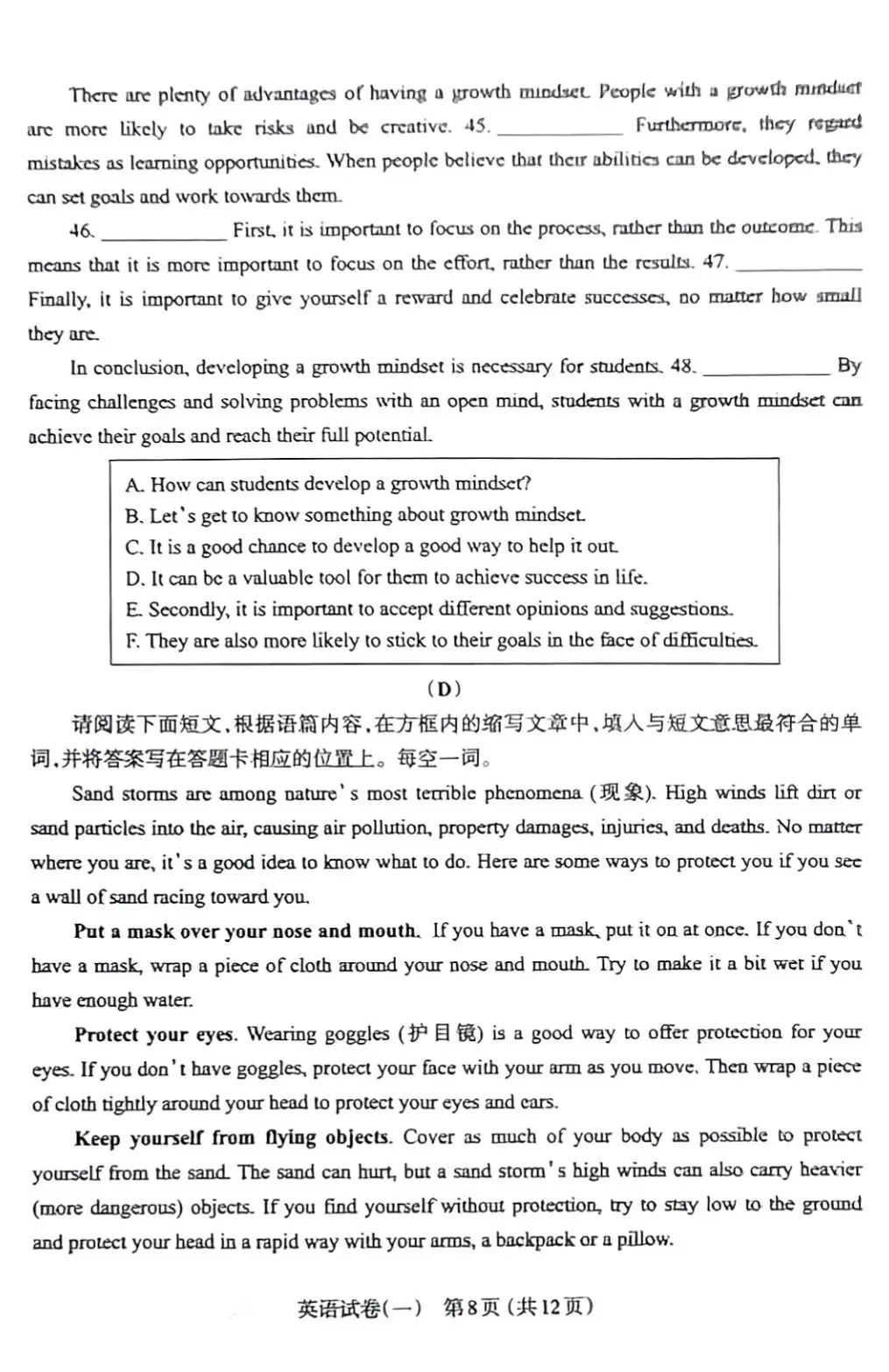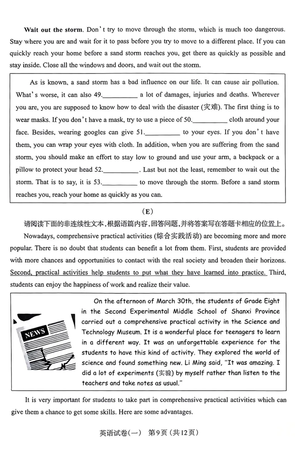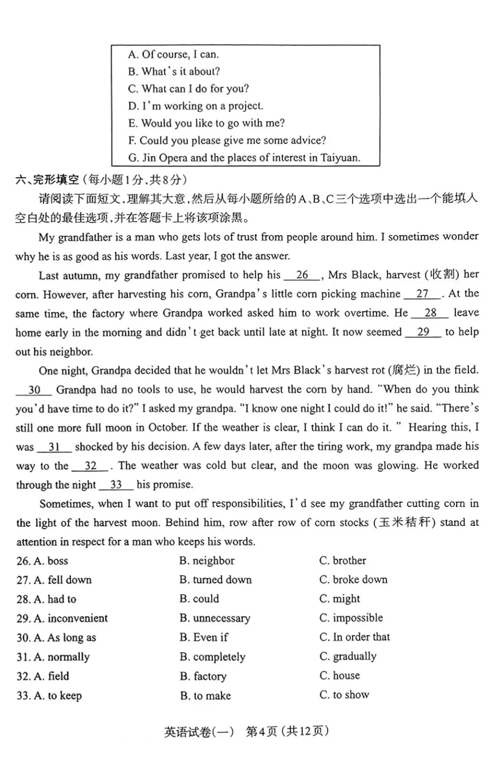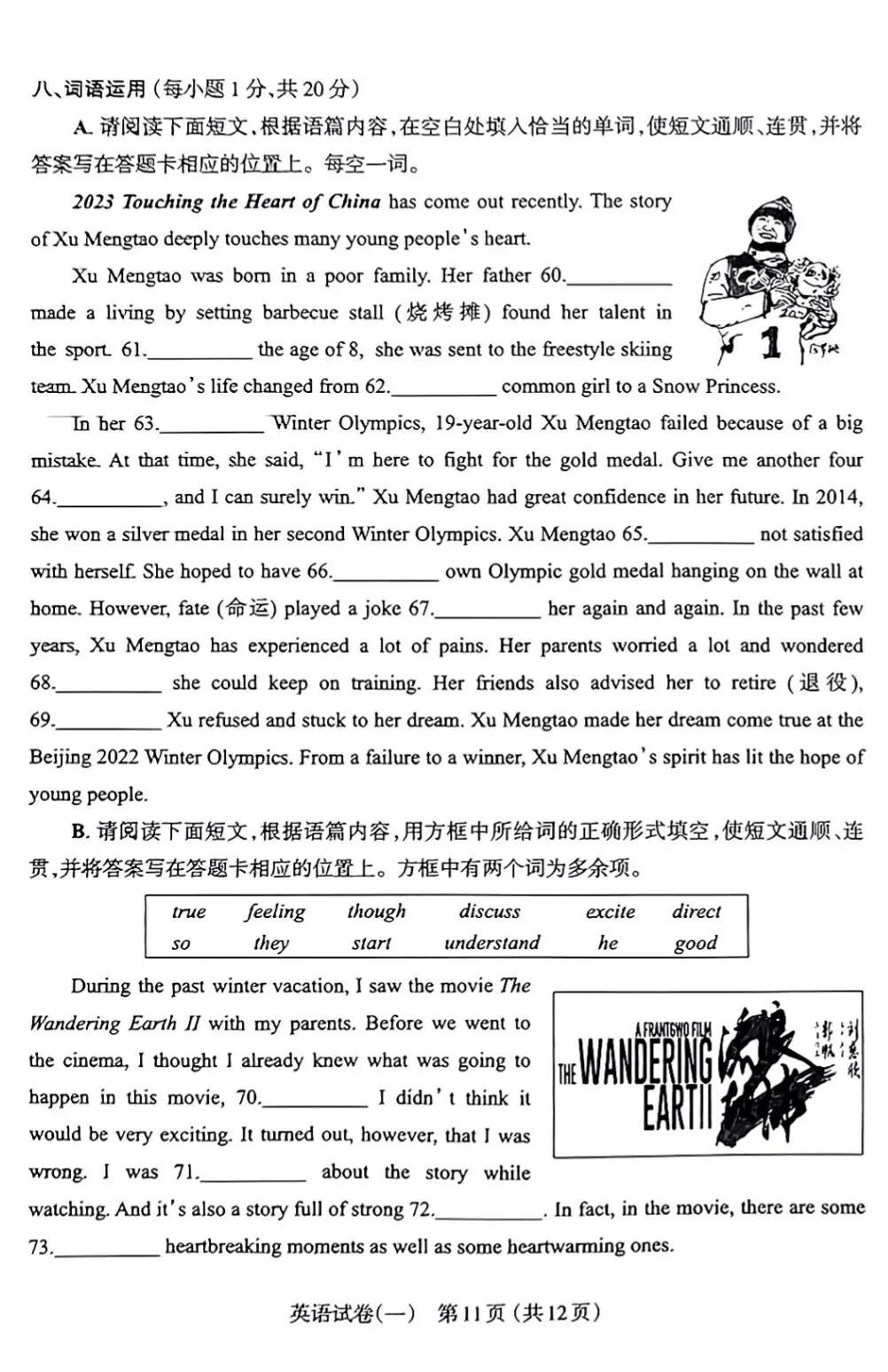 >【市一模】太原市2023年初中学业水平模拟考试(一)英语试卷+听力+答案