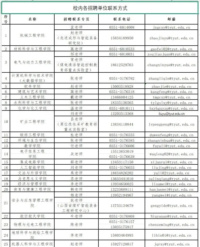 联系地址:山西省晋中市榆次区大学城太原理工大学人才工作办公室(人力资源部)