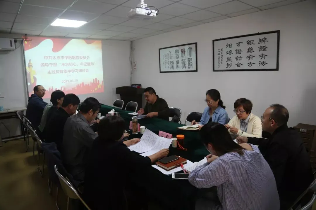 为进一步促进“不忘初心、牢记使命”主题教育活动学习不断往深里走、往心里走、往实里走,学深悟透、融会贯通,增强贯彻落实的自觉性和坚定性,提高运用党的创新理论指导实践、推动工作的能力,把学习成果转化为推进医院各项工作的实际成效,按照“不忘初心,牢记使命”主题教育活动安排,9月20日下午,太原市中医医院党委在医院三楼会议室召开了“不忘初心、牢记使命”主题教育第一次集中学习研讨会。市委卫健委工委“不忘初心、牢记使命”主题教育第二指导组成员仇小斌同志参会指导,太原市中医医院党委班子成员、党办、组织、宣传部门负责人参会,会议由院党委书记贾金霞主持。