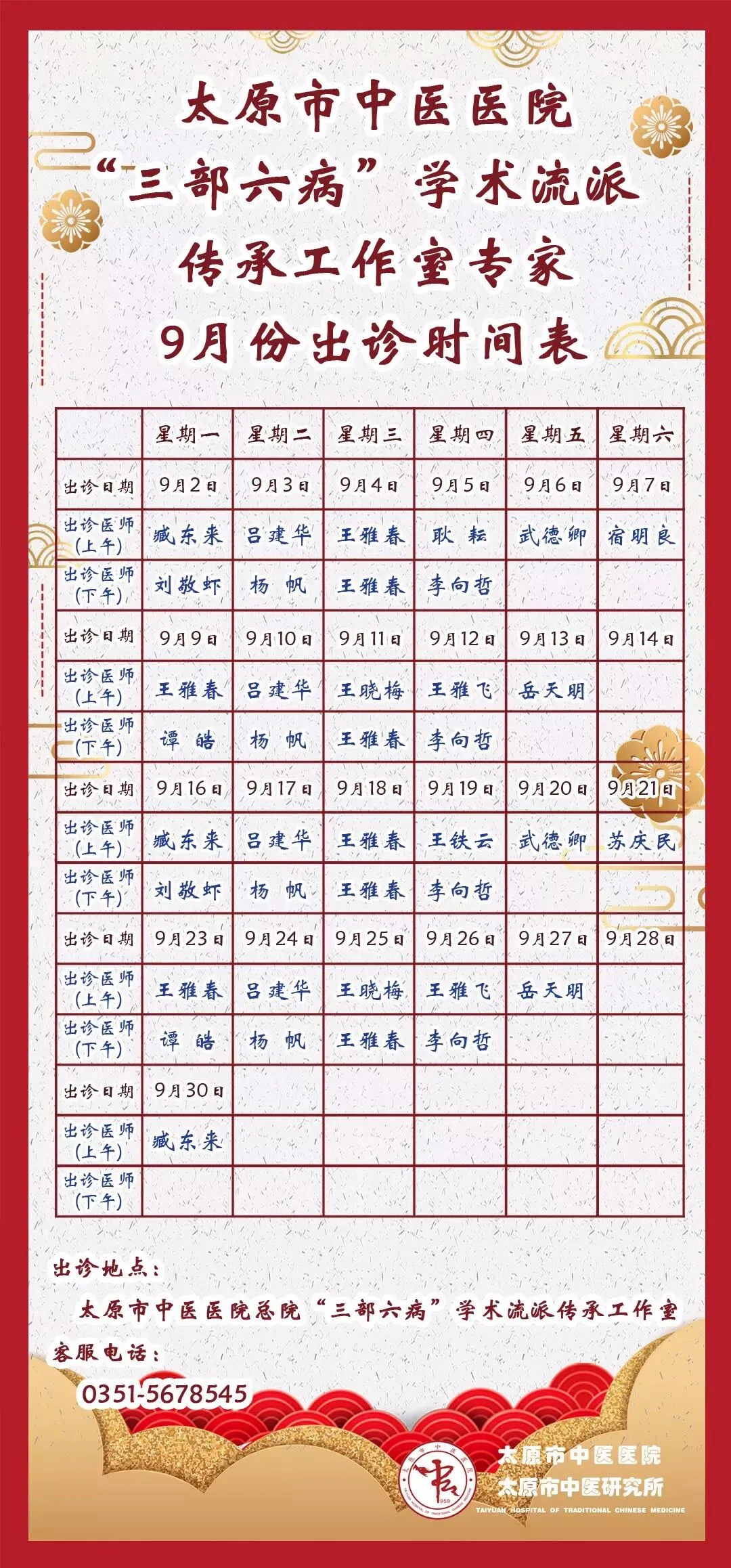 当前位置:首页>太原>太原市中医医院“三部六病”学术流派传承工作室专家9月份出诊时间表