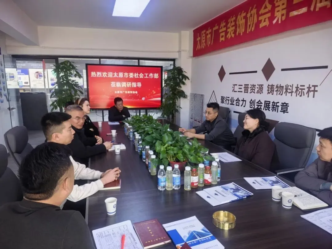 2026年3月3日,为深入了解行业社会组织建设与发展情况,精准赋能会展广告产业高质量发展,太原市委社会工作部一行莅临太原市广告装饰协会·会展物料联盟调研指导工作。会长/联盟负责人张建强及核心成员热情接待并陪同座谈交流。