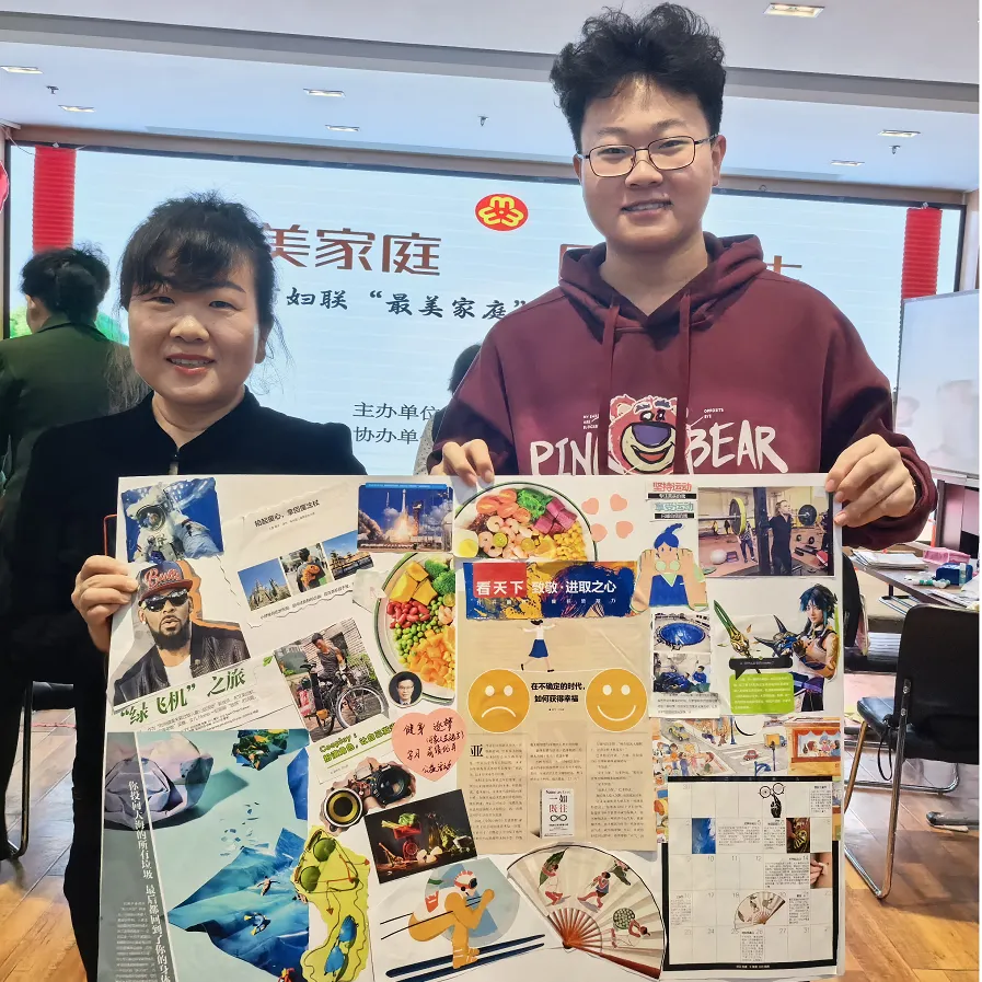 作品展示环节更是温情荟萃:有儿童稚嫩画作中的纯真爱意,有青年对未来生活的美好憧憬,有中年对责任担当的深刻诠释,有长辈沉淀半生的人生体悟,更有父母对子女的深情牵挂,一幅幅愿景板尽显家的温度与力量。