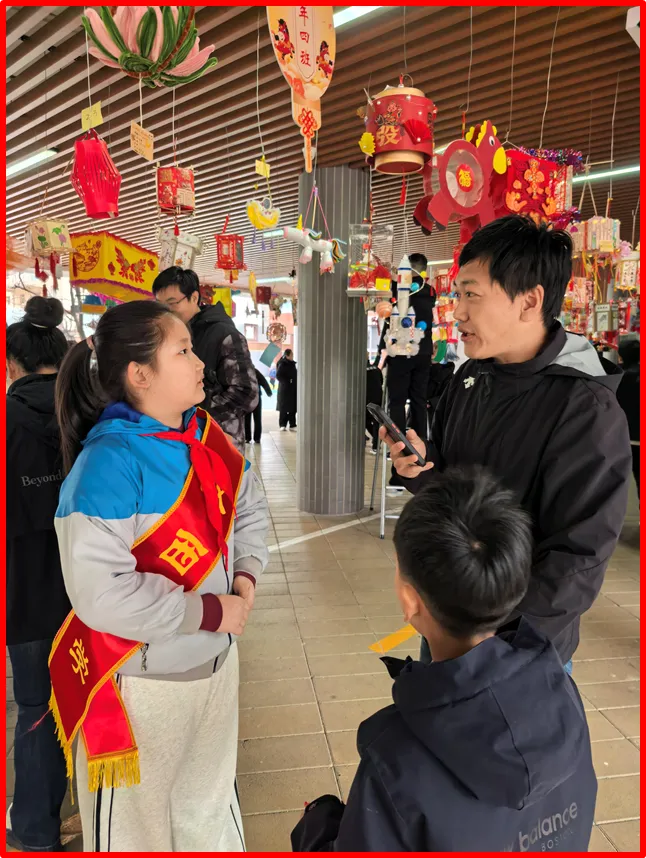 当天,大队委们化身小小传统文化讲解员和指引向导,他们有的佩戴着鲜艳的红领巾穿梭在校园里,有的自信大方地为家长和小同学们讲解元宵节的来历以及相关民俗活动与美好寓意。稚嫩而认真的讲解中,赢得了大家阵阵掌声。
