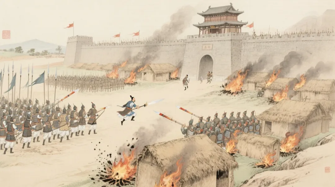 元嘉二十七年(450),刘宋王朝发动北伐战争,王玄谟被任命为宁朔将军,受辅国将军萧斌节度。王玄谟北上,兵锋直指碻磝,戍主奔逃。占领了碻磝,宋军进围滑台。北魏军在此防守坚固,不易攻破。将佐发现城内有许多茅草屋,建议发射火箭将它们烧毁,以此动摇魏兵军心。王玄谟知道茅草屋内储藏的多是粮草,想要攻下后据为己有,舍不得烧掉,没有采纳。魏兵很快发现了这个问题,将茅屋拆除,代而挖掘地窖,储藏粮草。后来宋兵再想实施火攻计划,也不可能了。