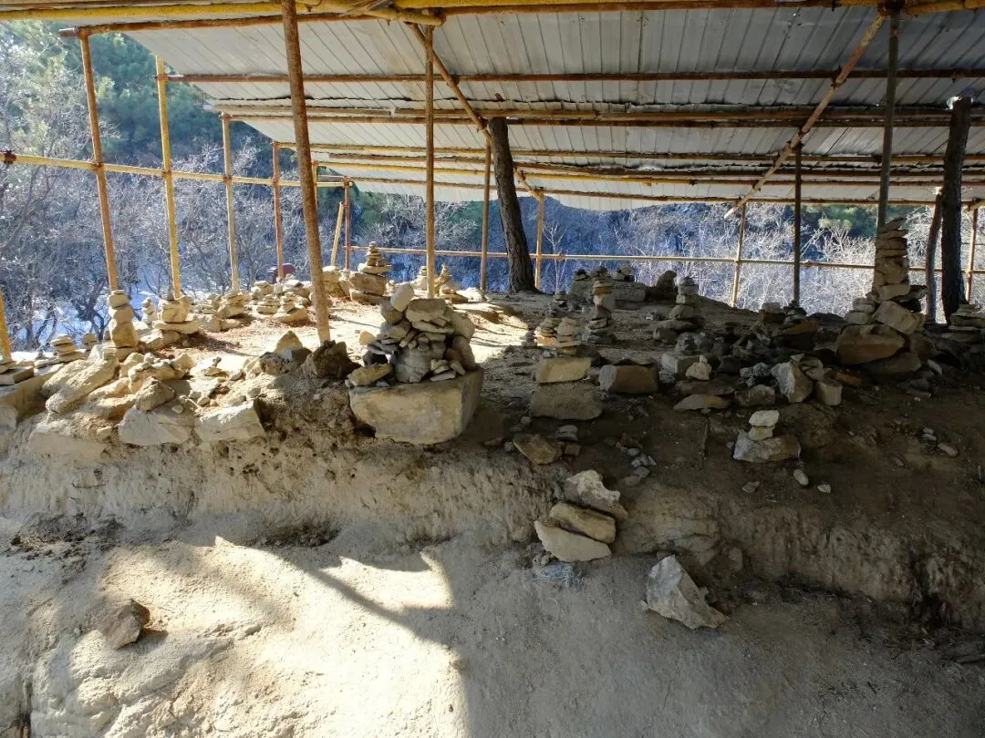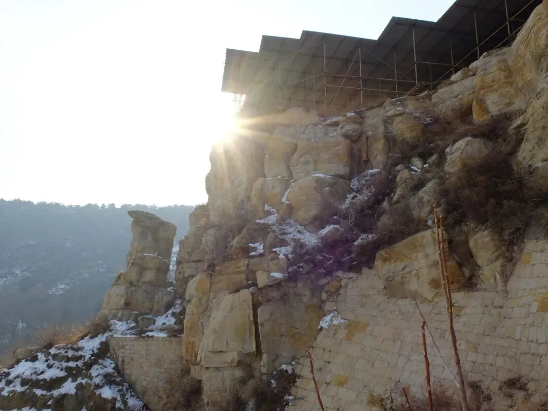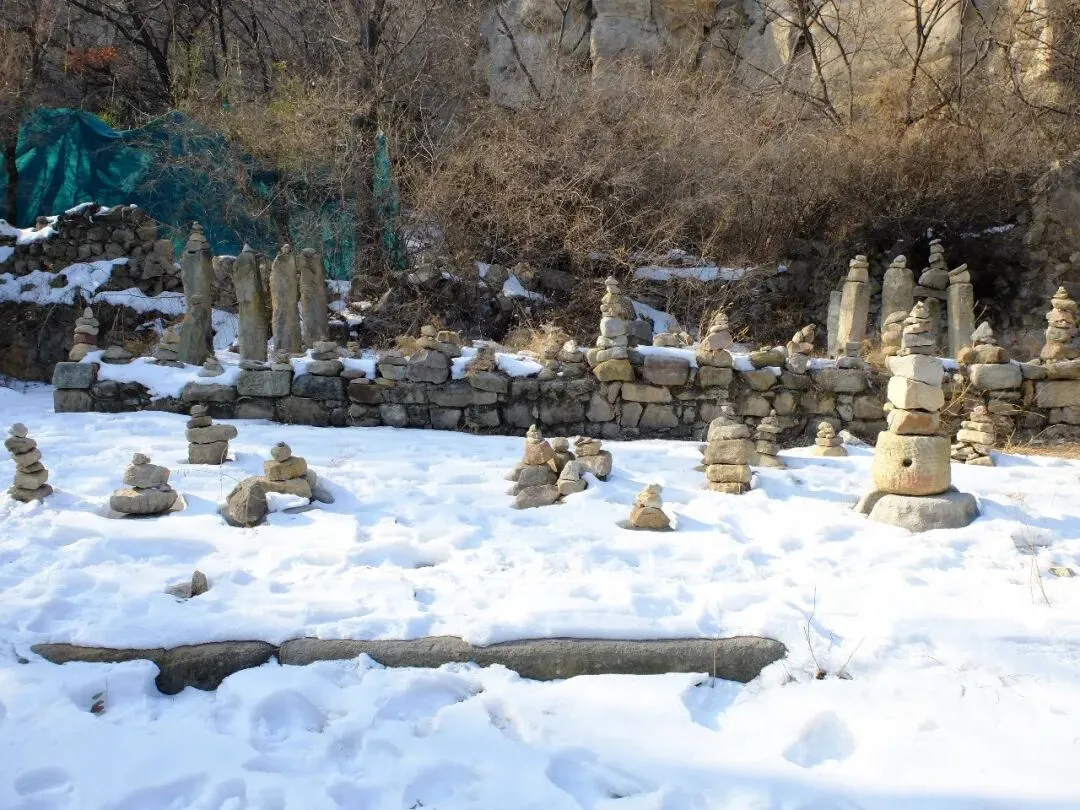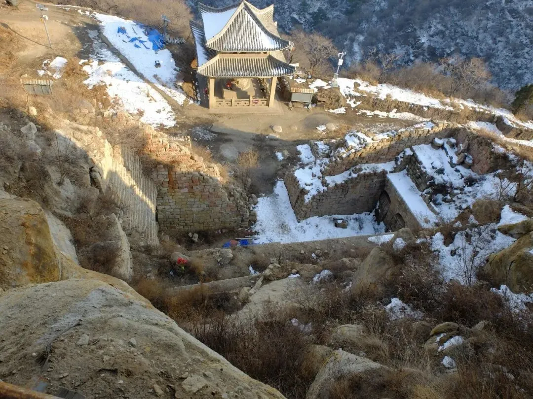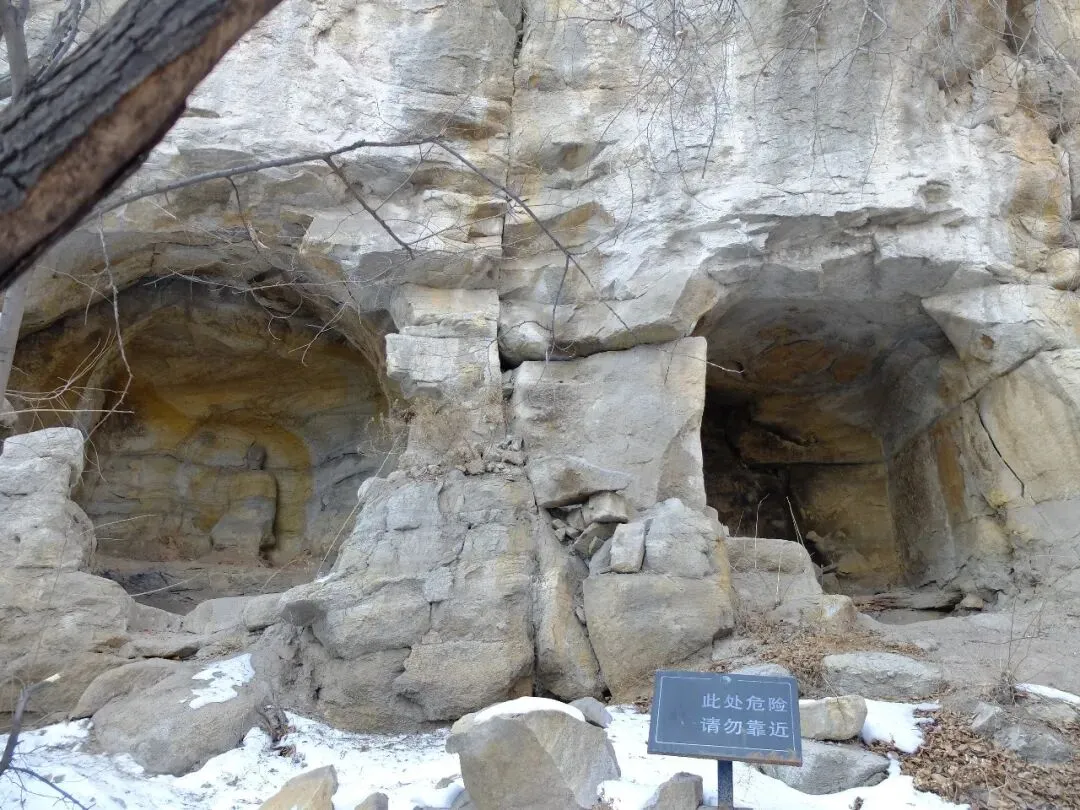 分区:坐西朝东,分南北两区。北区是北齐佛阁遗址(依大佛龛而建,墙体有北齐千佛龛、唐代护墙);南区为明代重建的长方形寺院区(有山门、经幢、正殿、配殿等遗迹)。摩崖大佛与石窟:寺西有石窟,主尊阿弥陀佛造像虽头部已失,但体量巨大;千佛龛等保留北齐造像风格。燃灯石塔:北齐同期所建,通高 4.12 米,六角单层,是我国现存最早的燃灯石塔,极具考古价值。童子寺遗址是国内少见的摩崖大佛 + 石窟 + 地面寺院相结合的早期山地佛寺实例,对研究北朝至隋唐的佛教建筑、造像艺术有重大意义。/End/