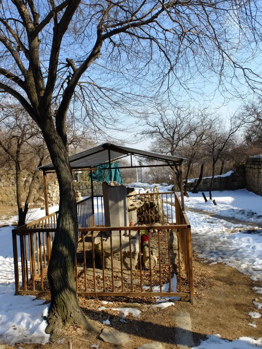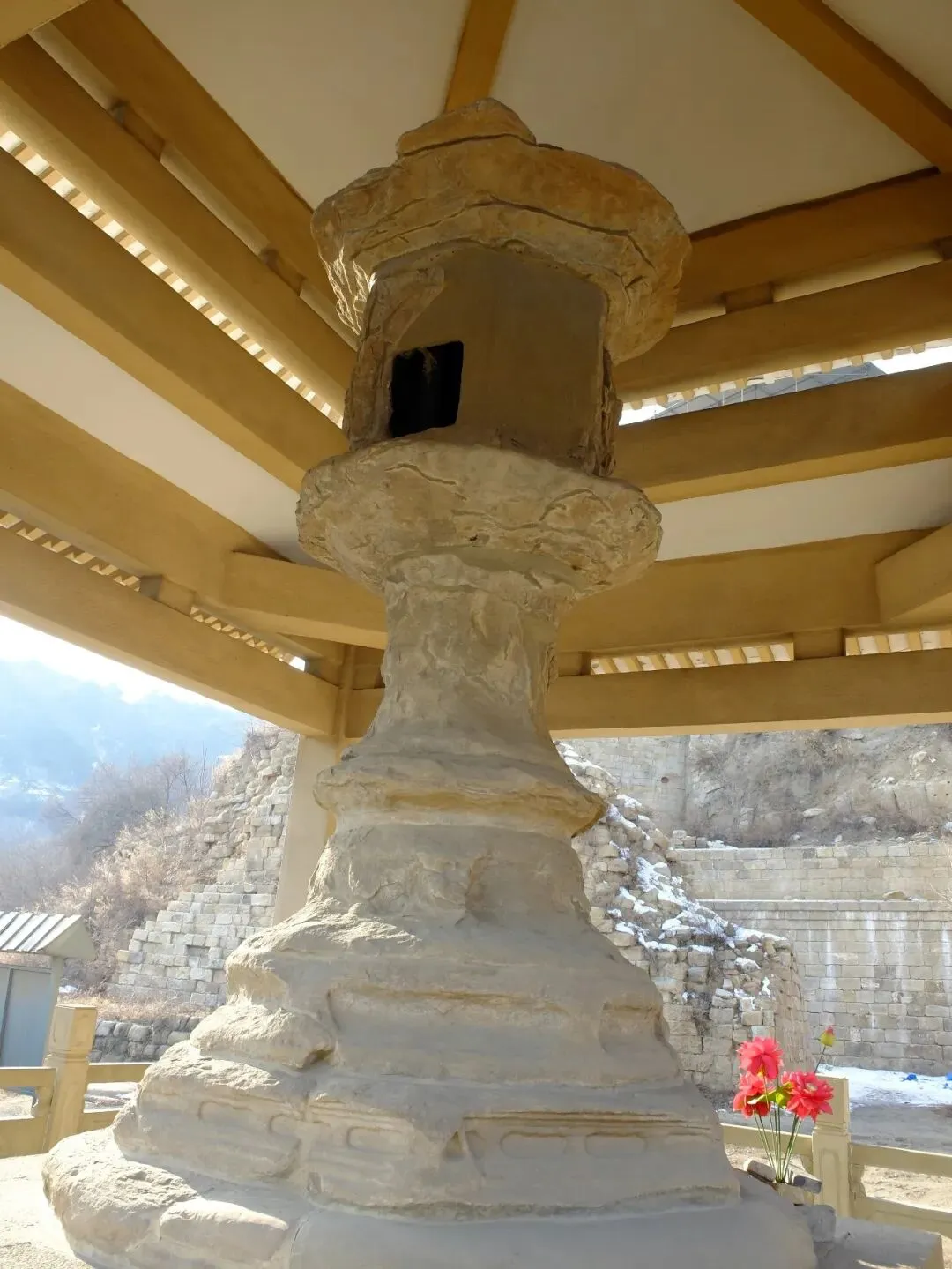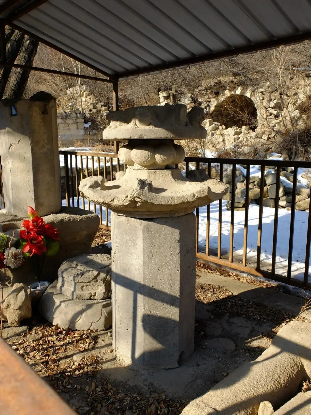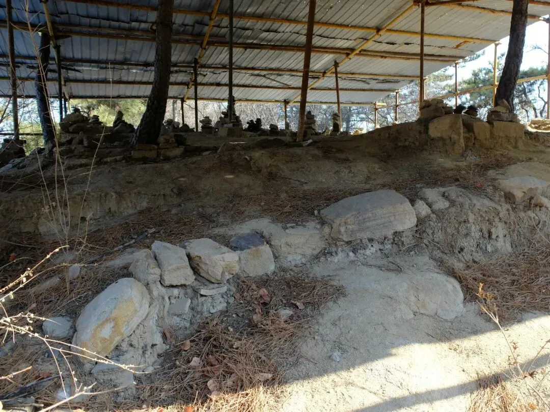 分区:坐西朝东,分南北两区。北区是北齐佛阁遗址(依大佛龛而建,墙体有北齐千佛龛、唐代护墙);南区为明代重建的长方形寺院区(有山门、经幢、正殿、配殿等遗迹)。摩崖大佛与石窟:寺西有石窟,主尊阿弥陀佛造像虽头部已失,但体量巨大;千佛龛等保留北齐造像风格。燃灯石塔:北齐同期所建,通高 4.12 米,六角单层,是我国现存最早的燃灯石塔,极具考古价值。童子寺遗址是国内少见的摩崖大佛 + 石窟 + 地面寺院相结合的早期山地佛寺实例,对研究北朝至隋唐的佛教建筑、造像艺术有重大意义。/End/