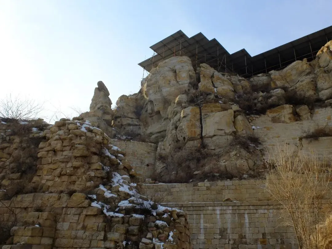 始建北齐:北齐天保七年(556 年)由宏礼禅师创建;天保十年(559 年)文宣帝高洋曾亲临礼佛。唐代鼎盛:高宗李治与武则天曾巡幸瞻礼大佛;佛阁有唐代护墙加固,还发现唐代佛龛壁画。明清重建 / 修葺:明正德初年(1506 年)重建寺院区;清代有多次修缮,嘉庆后逐渐废弃。为第八批全国重点文物保护单位、第五批山西省文物保护单位。遗址布局与核心遗存
