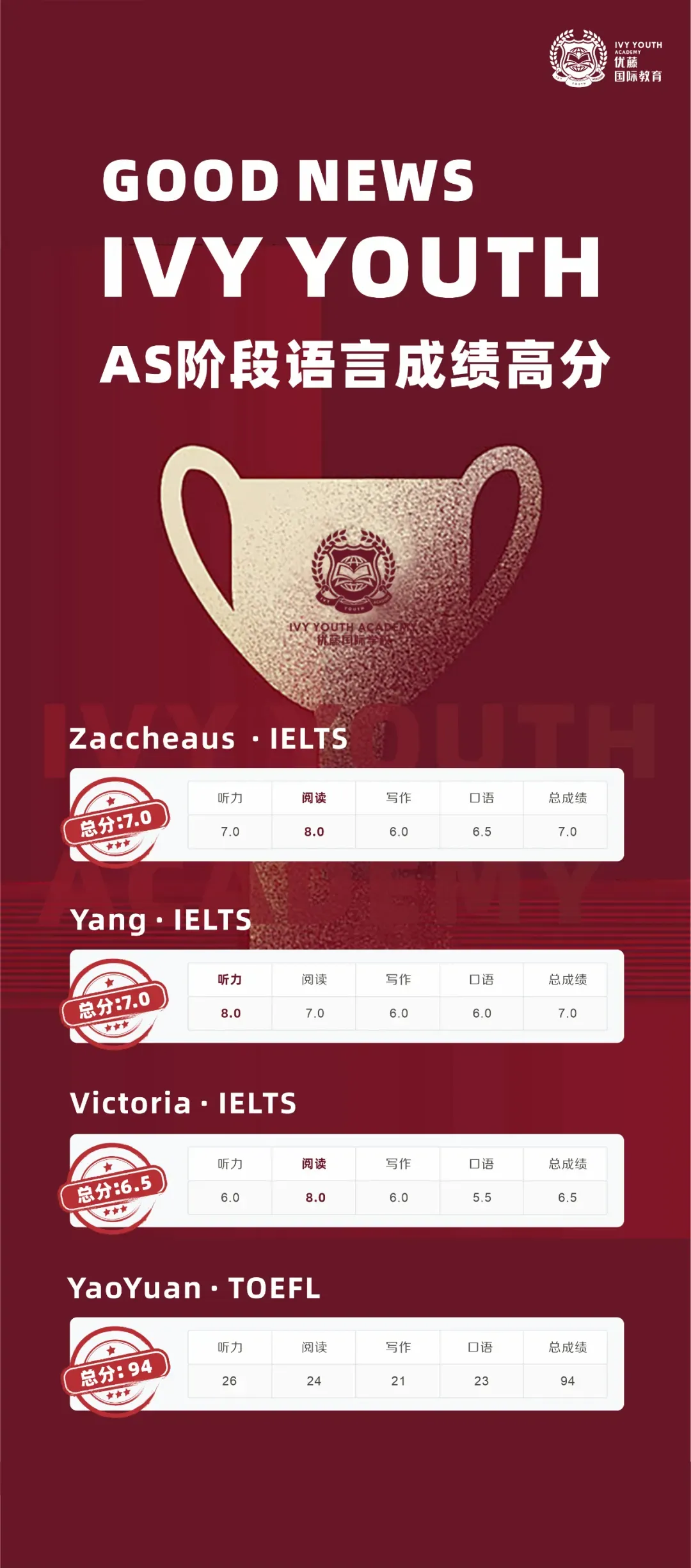 在过去的两年里,优藤的教育成果熠熠生辉。优藤搭建了丰富的活动平台,鼓励学子们在多元探索和实践中充分挖掘自身潜力、尽情展示自我,实现全面发展。同时,依托优藤雄厚的师资力量,丰富的教学资源及创新的教学模式,同学们在学术教育与语言能力上展现出了非凡实力。