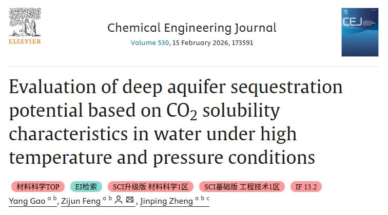 地质封存是实现碳中和的关键技术,深层咸水含水层凭借巨大容量成为CO₂封存的核心载体,而溶解封存是保障 CO₂长期稳定存储的核心机制。然而,深层咸水含水层普遍存在中高温(25-100℃)、高压(10-20MPa)环境,CO₂在水中的溶解行为呈现显著非理想性,传统状态方程与亨利定律难以精准预测其溶解度,导致含水层封存潜力评估存在较大误差,制约了地质封存技术的规模化应用。