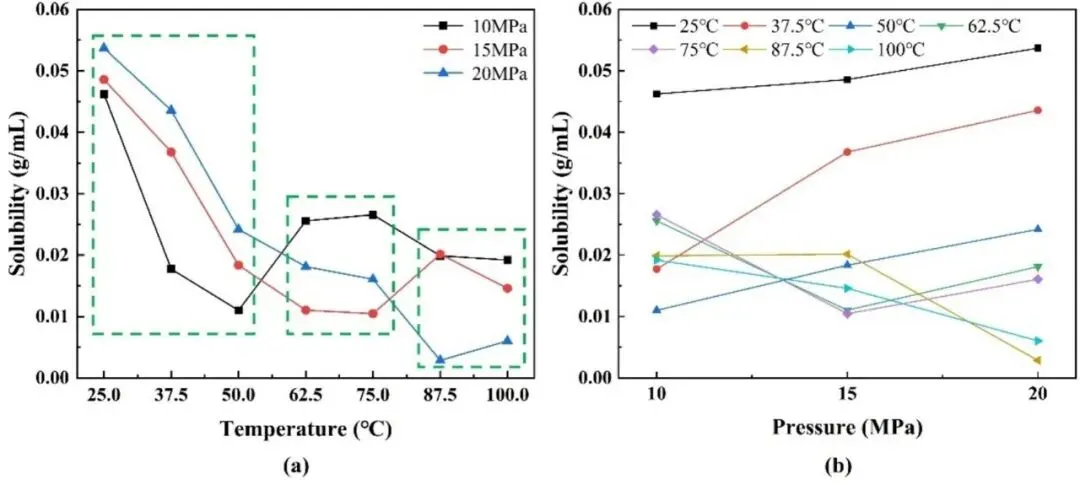 1、明确溶解主导机制:高温高压下 CO₂溶解度受温度、压力、分子间相互作用与离子强度共同调控,特定区间的 “异常升高” 源于偶极诱导偶极作用增强与极性差异缩小,填补了传统热力学理论的认知空白;