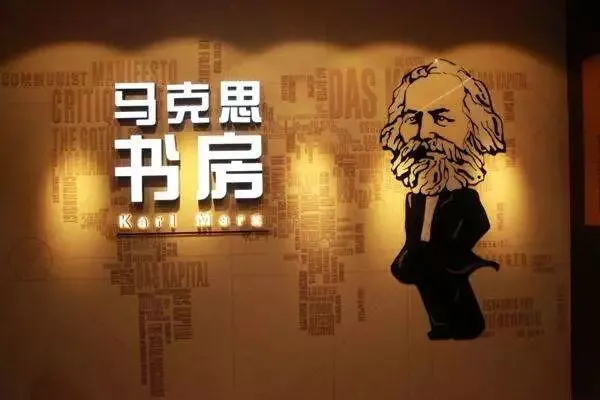 走进马克思书房,视觉冲击和心灵震撼是第一感受。入口处是身穿燕尾服、须发皆白的卡通版马克思画像。画中的马克思面带微笑,直视远方,那炯炯有神的目光,仿佛向人们传递着他内心的伟大抱负。左手墙上,数十幅和马克思有关的图片、油画,直观地反映了马克思和朋友们高尚的友谊,和妻子燕妮真挚的革命爱情,还有他在工人阶级中的所学所感所悟。与之相对的是一面书脊模样装饰的隔墙,墙上《共产党宣言》《资本论》及“后悔过去,不如奋斗将来”等字样赫然在目。