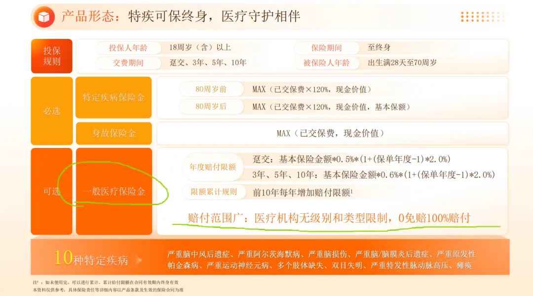 赔付范围广:医疗机构无级别和类别限制,0免赔100%赔付。“一般医疗金责任”就是这个产品的亮点,关键保险公司给一般医疗金设置的理赔门槛很低,目的就是让大家尽最大可能把一般医疗金都用完。