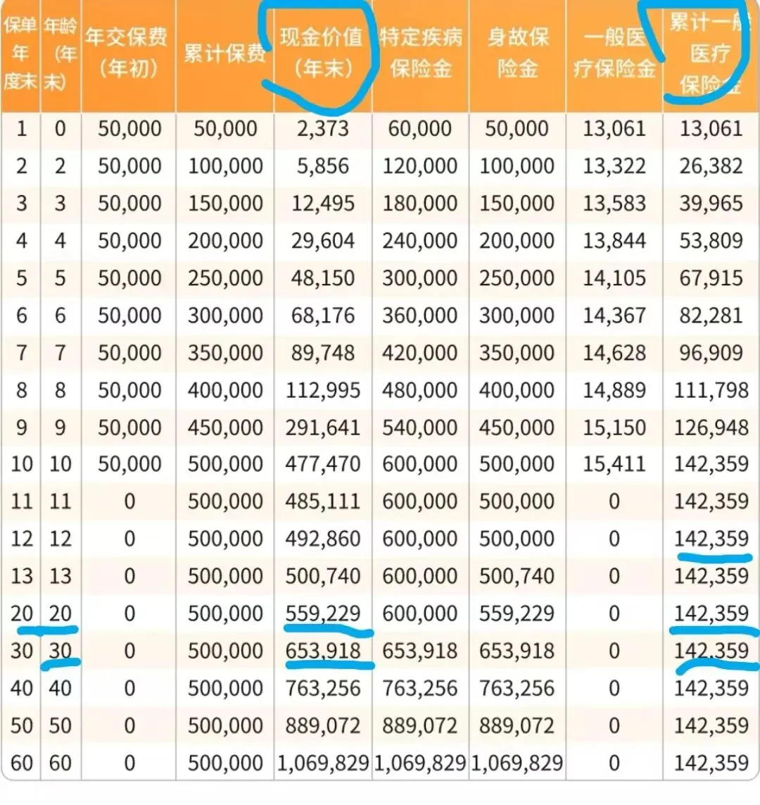 现金价值可以以后给孩子当婚嫁金或者教育金,创业金用,一般医疗金解决日常的医疗费用,最低保费5000元,相比动辄几千元的中端医疗产品,更实惠啊。