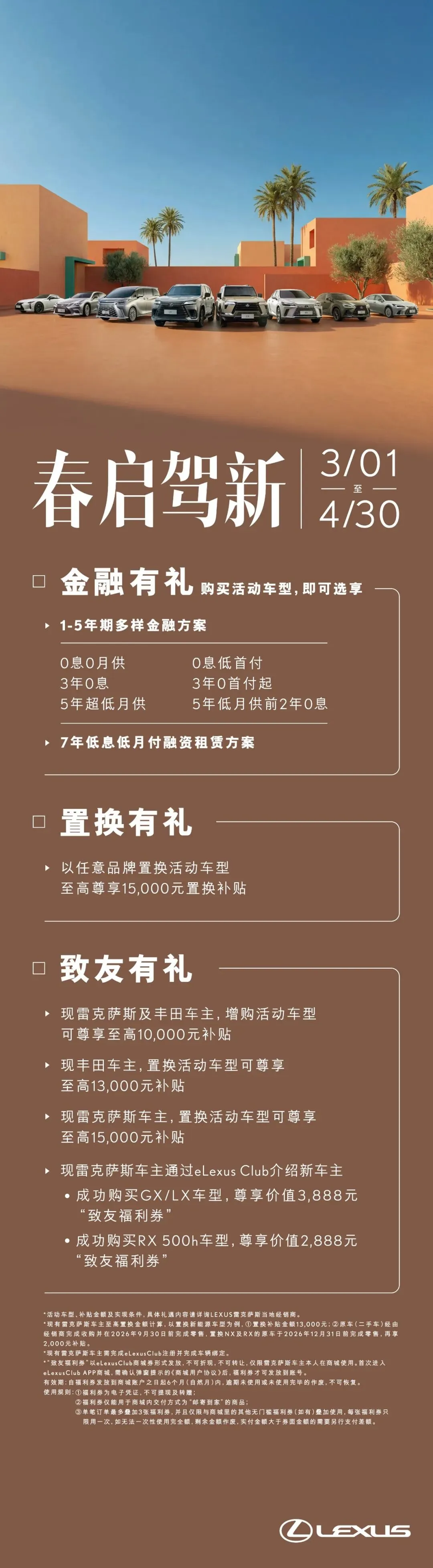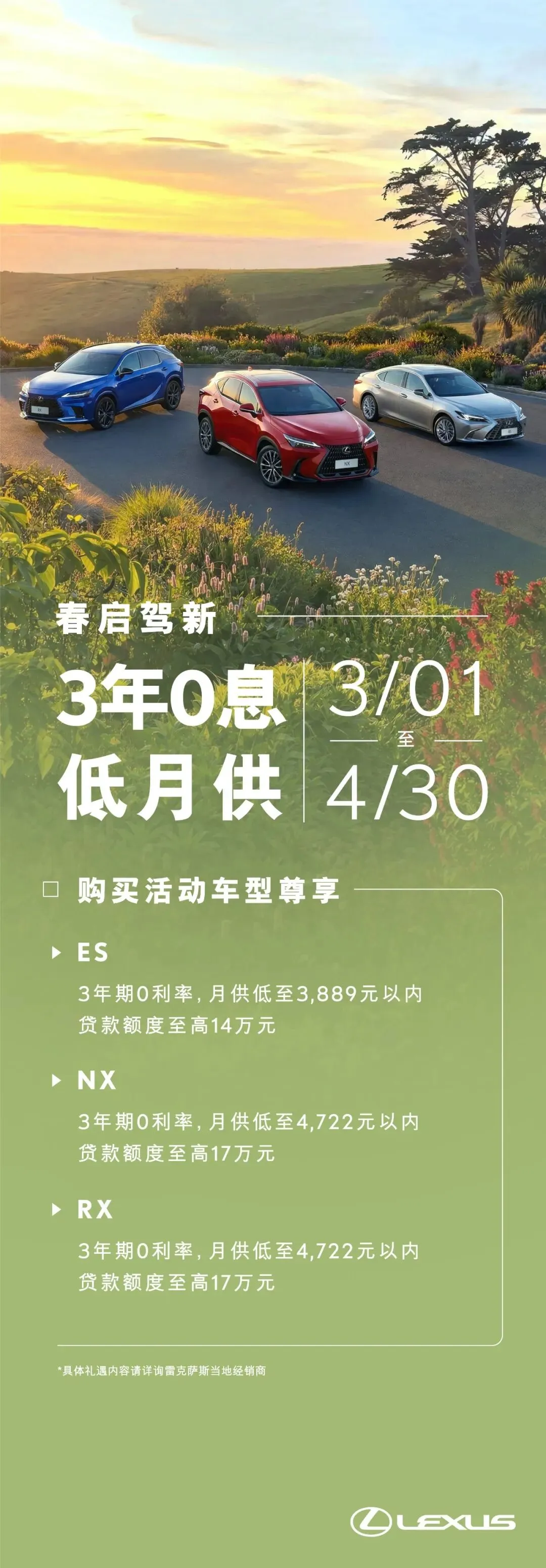 购ES/NX/RX车型,尊享惊喜金融礼~
