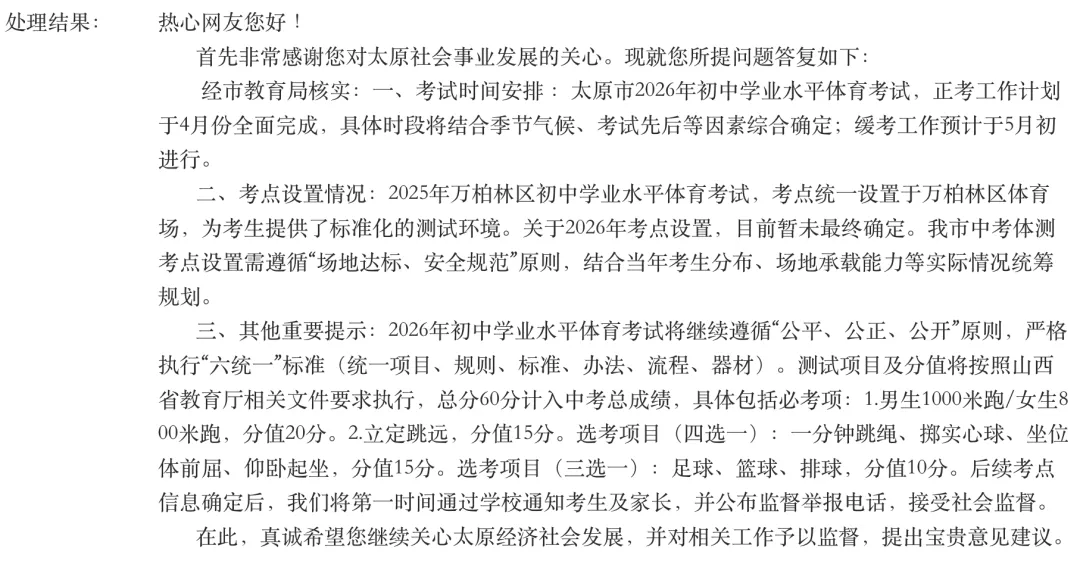 太原市2026年初中学业水平体育考试,正考工作计划于